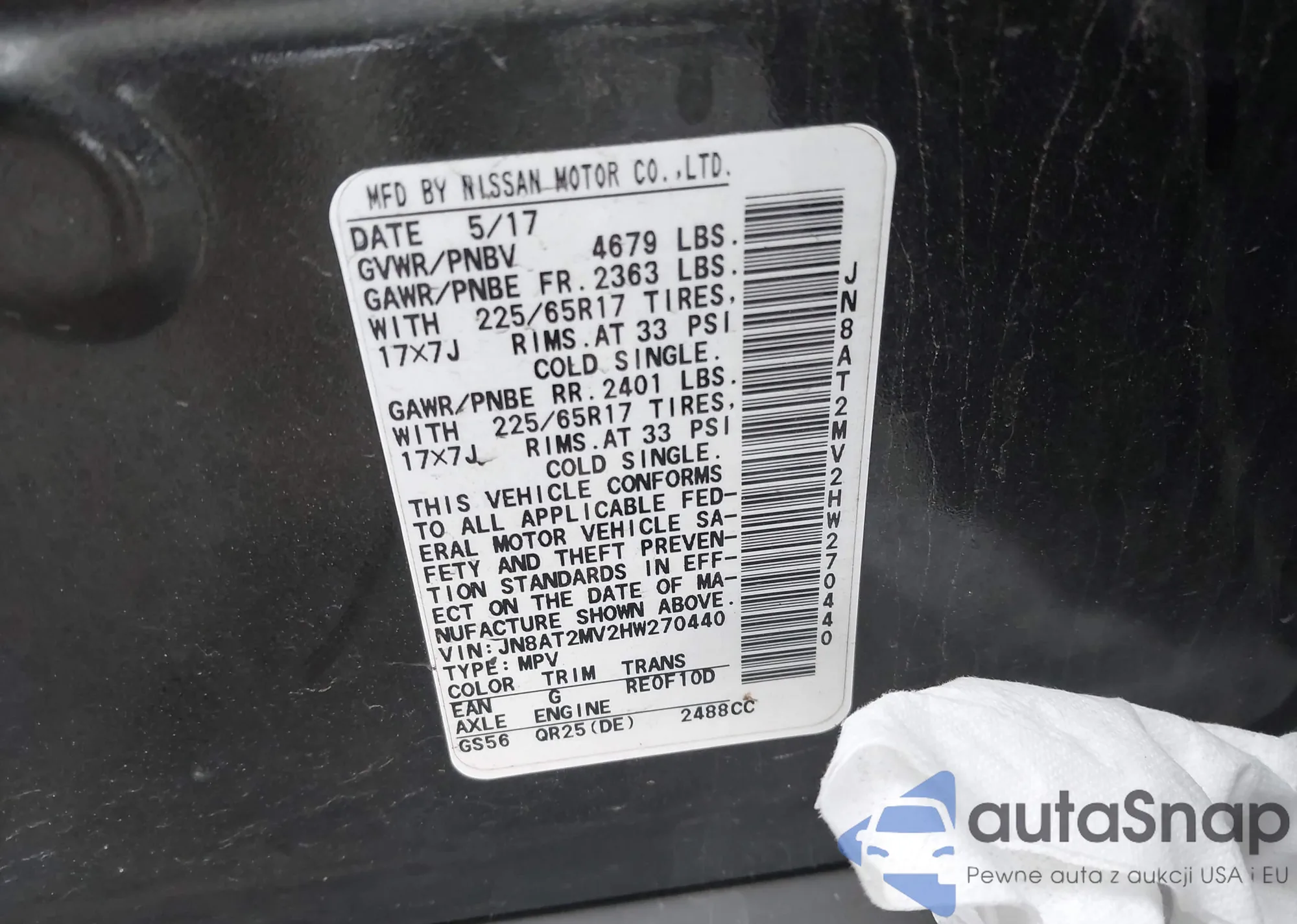 LOT: 42219276 VIN: JN8AT2MV2HW270440