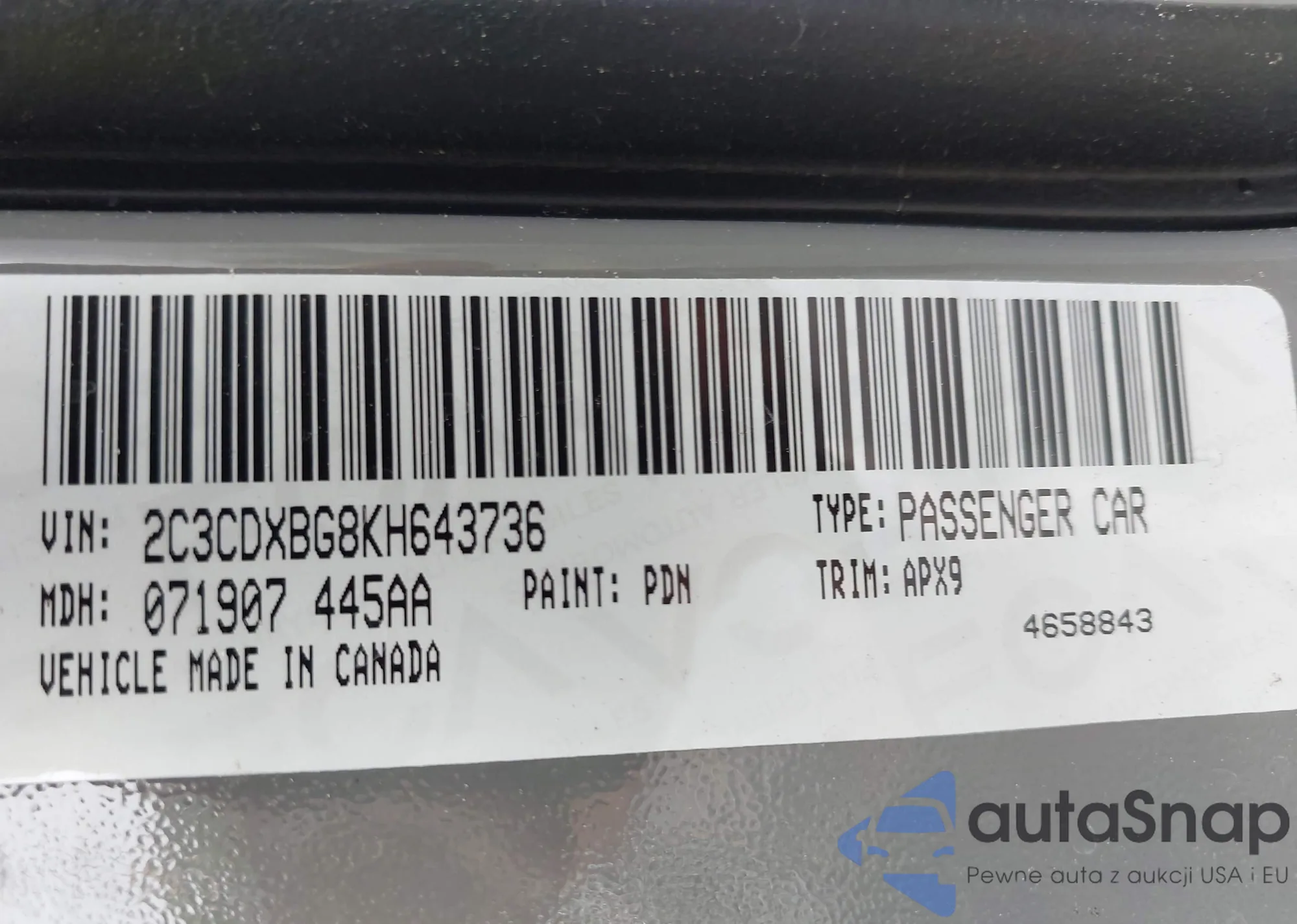 • VIN 2C3CDXBG8KH643736