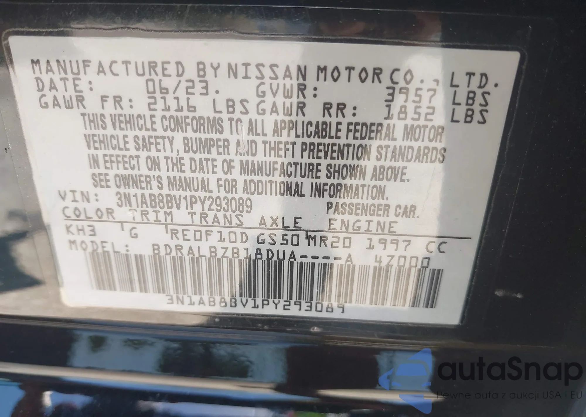 • VIN 3N1AB8BV1PY293089