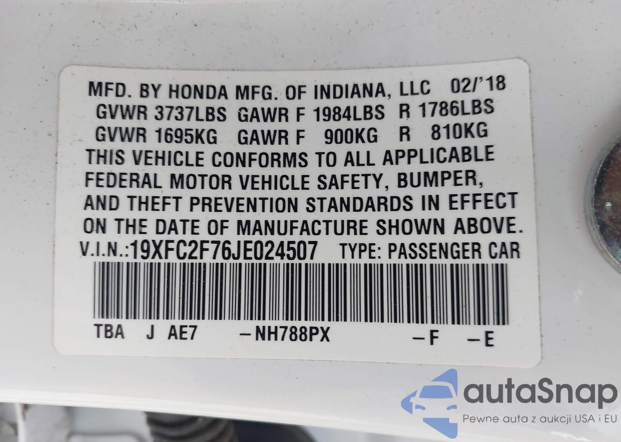 • VIN 19XFC2F76JE024507
