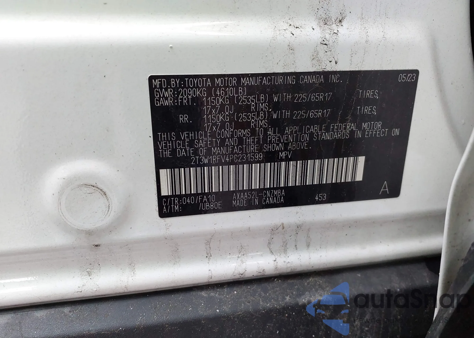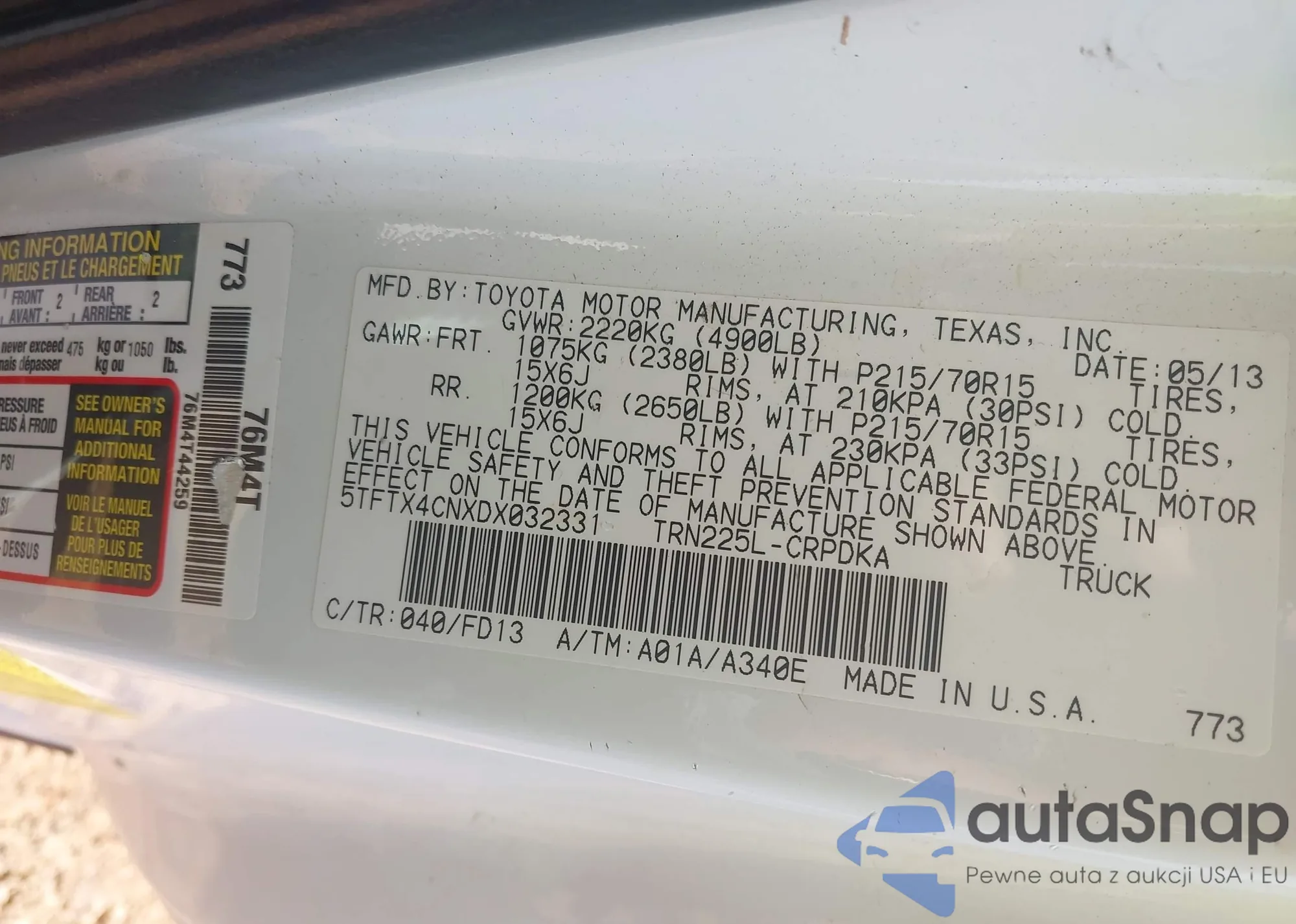 • VIN 5TFTX4CNXDX032331