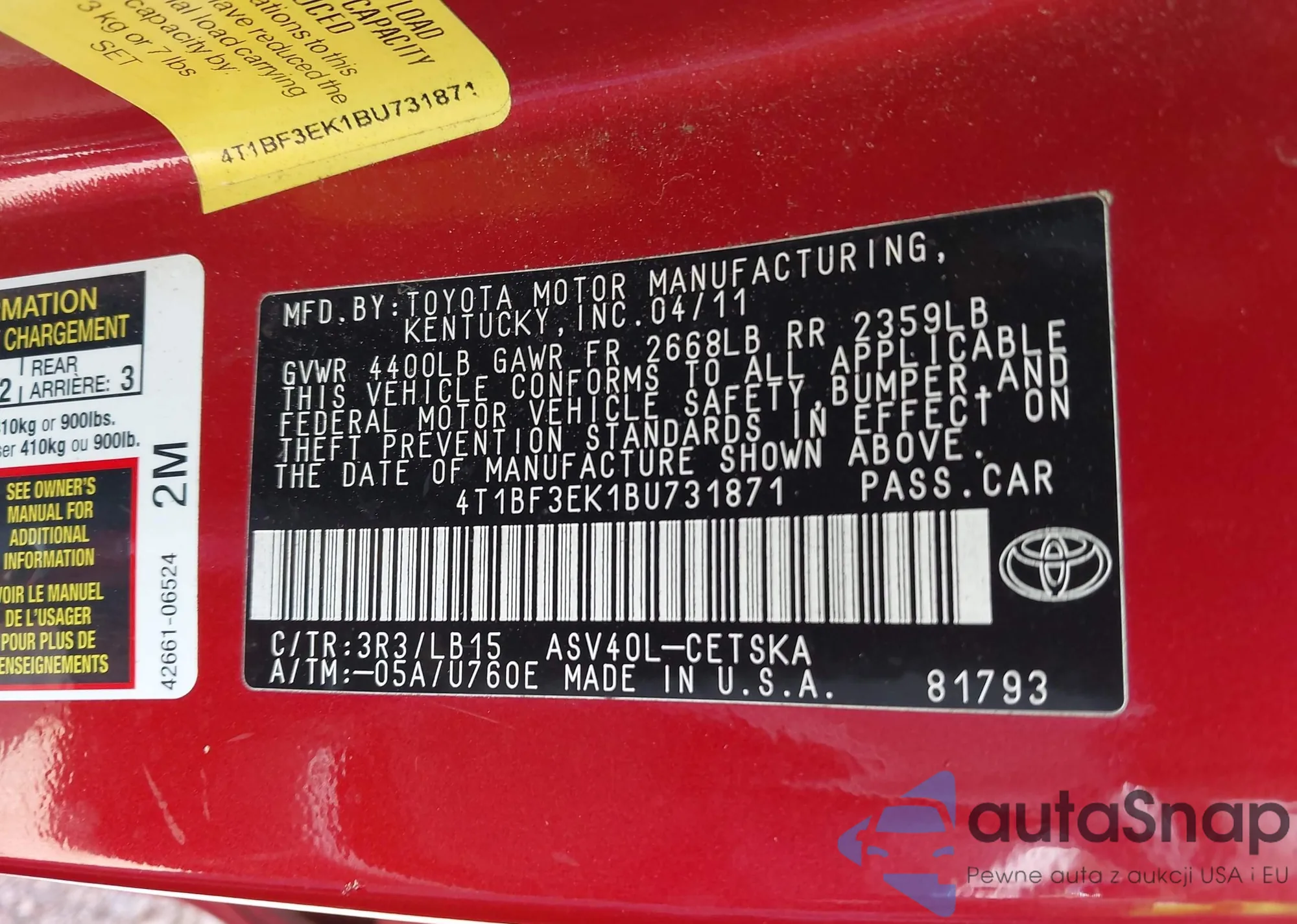 • VIN 4T1BF1FKXDU679064