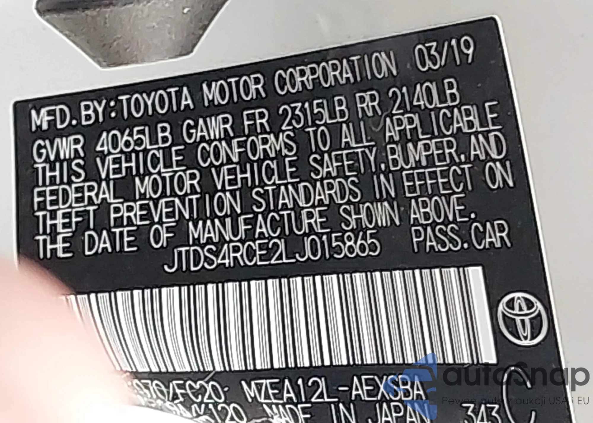 LOT: 42274580 VIN: JTDS4RCE2LJ015865