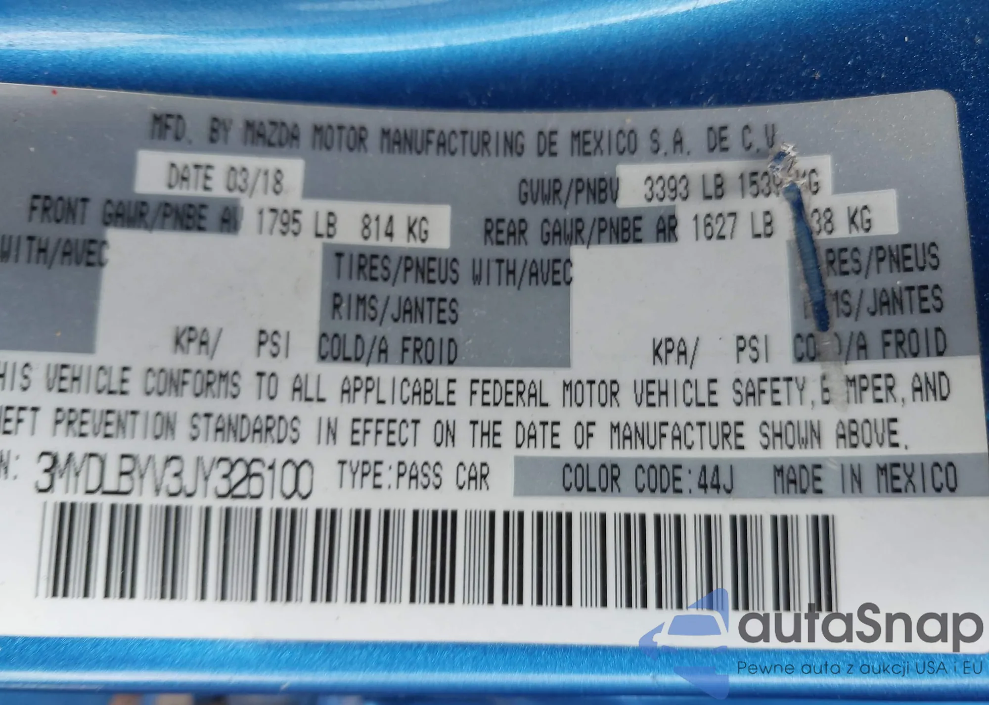• VIN 3MYDLBYV3JY326100
