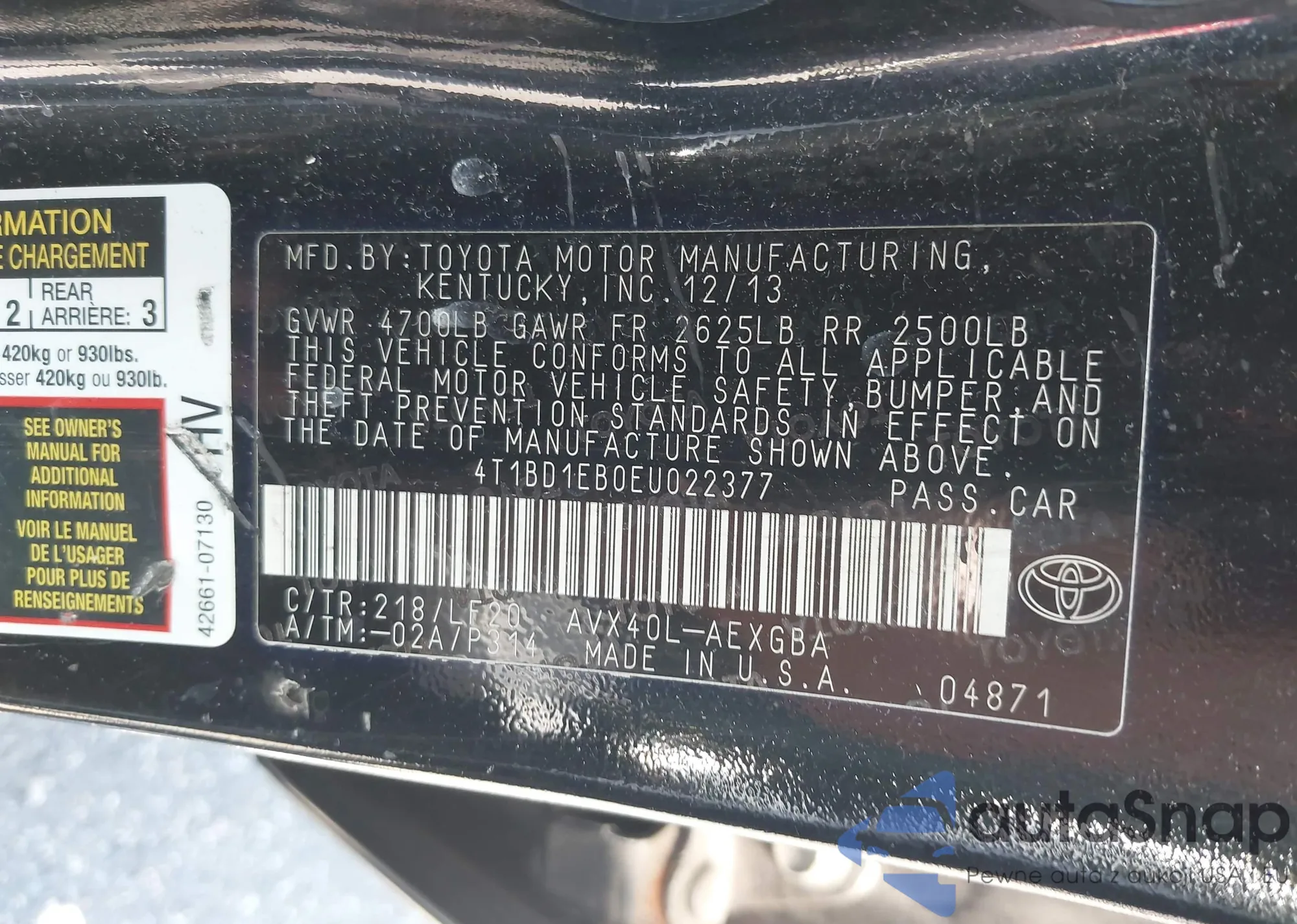 • VIN 4T1BD1EB0EU022377