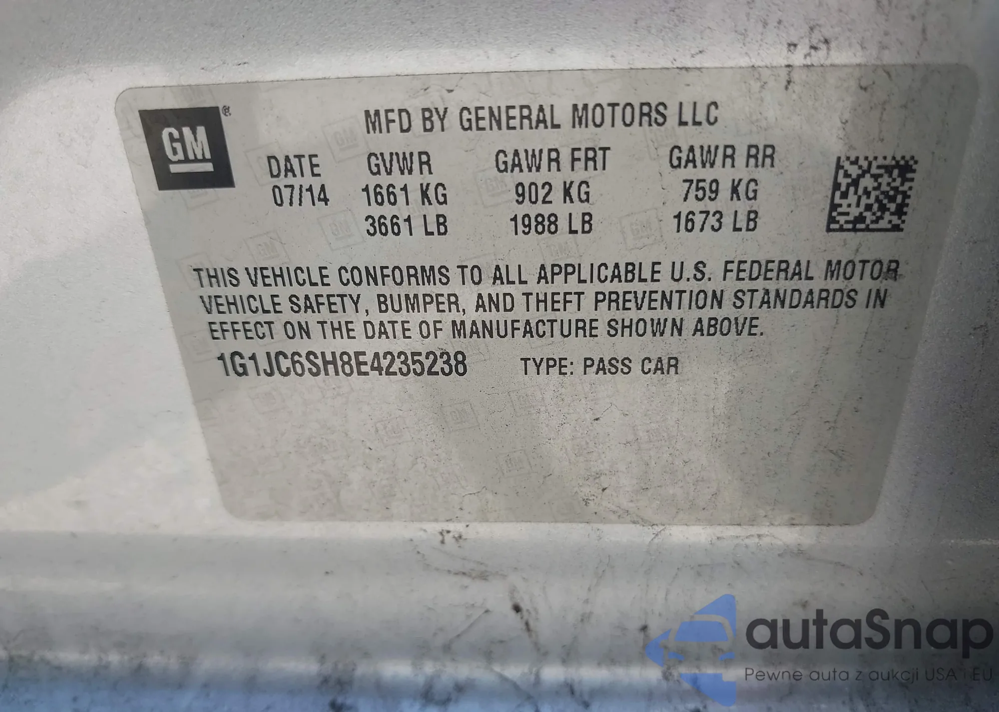 LOT: 42321789 VIN: 1G1JC6SH8E4235238