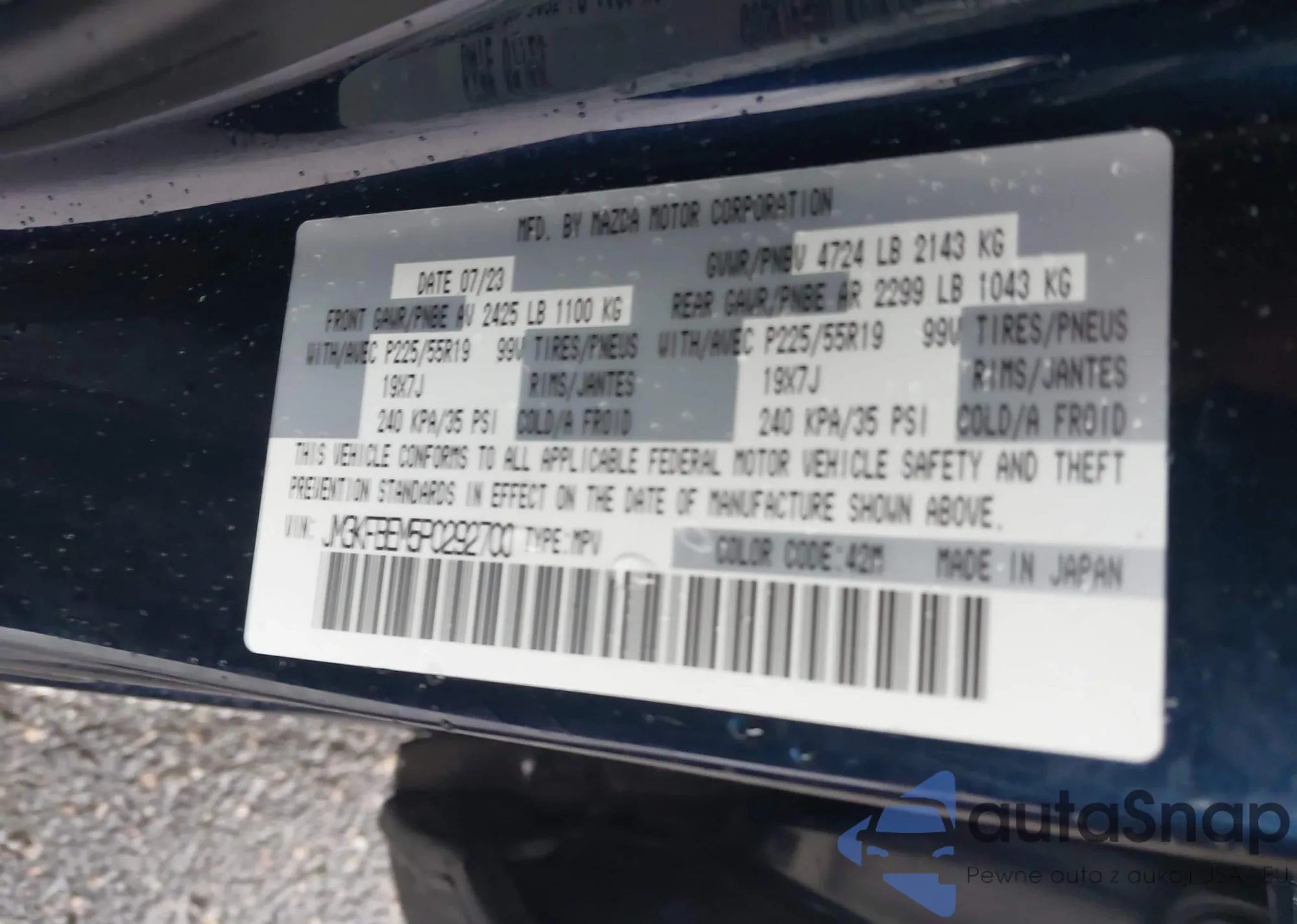 • VIN JM3KFBEM5P0292700