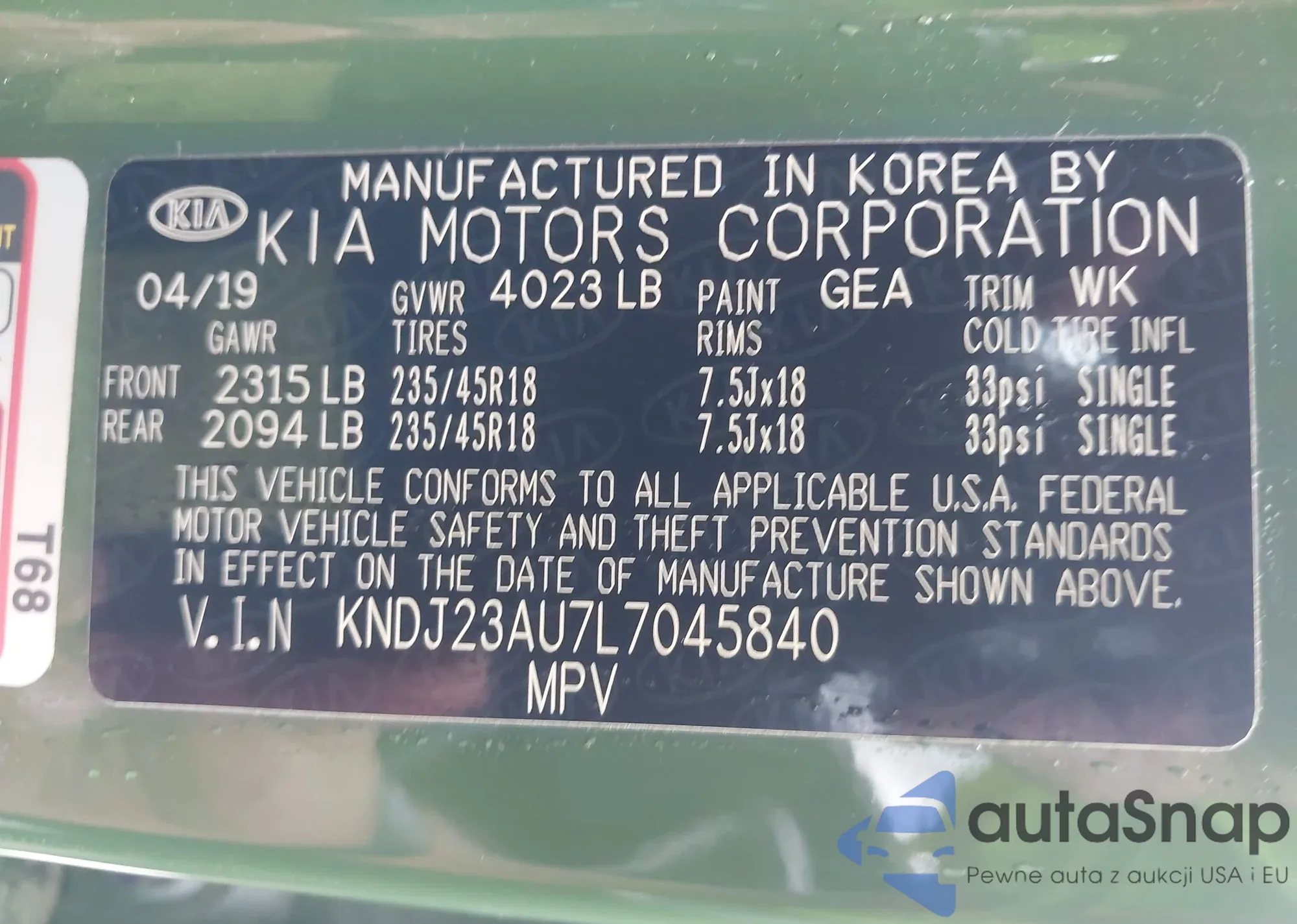 • VIN KNDJ23AU7L7045840