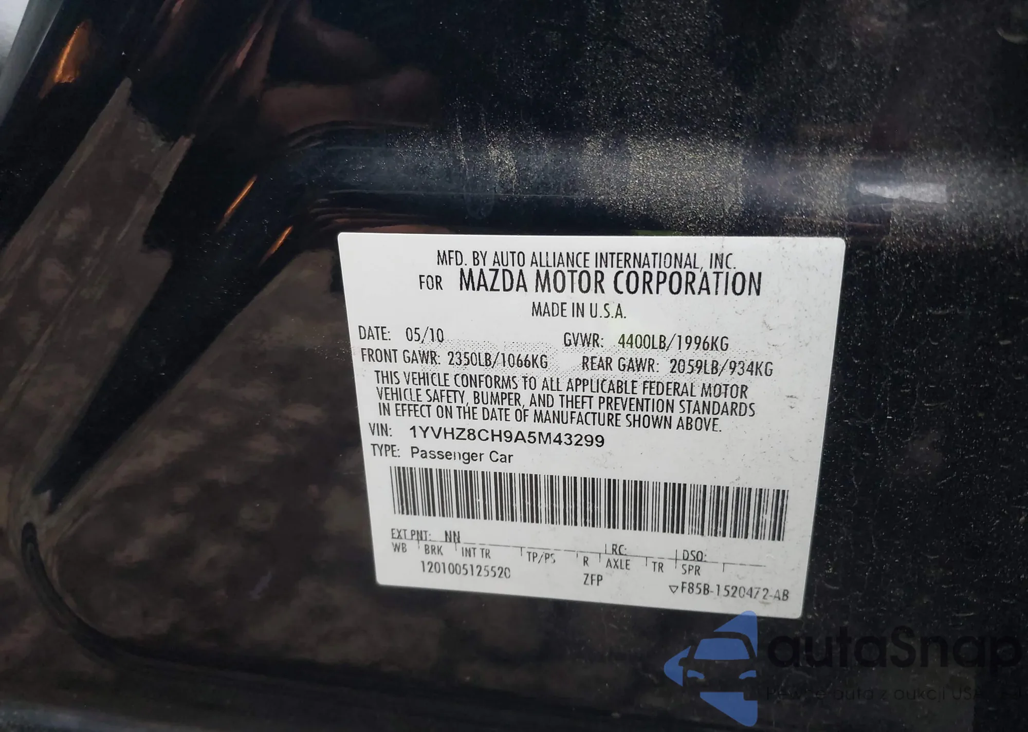 LOT: 42003467 VIN: JM3KFBCM6M0336704