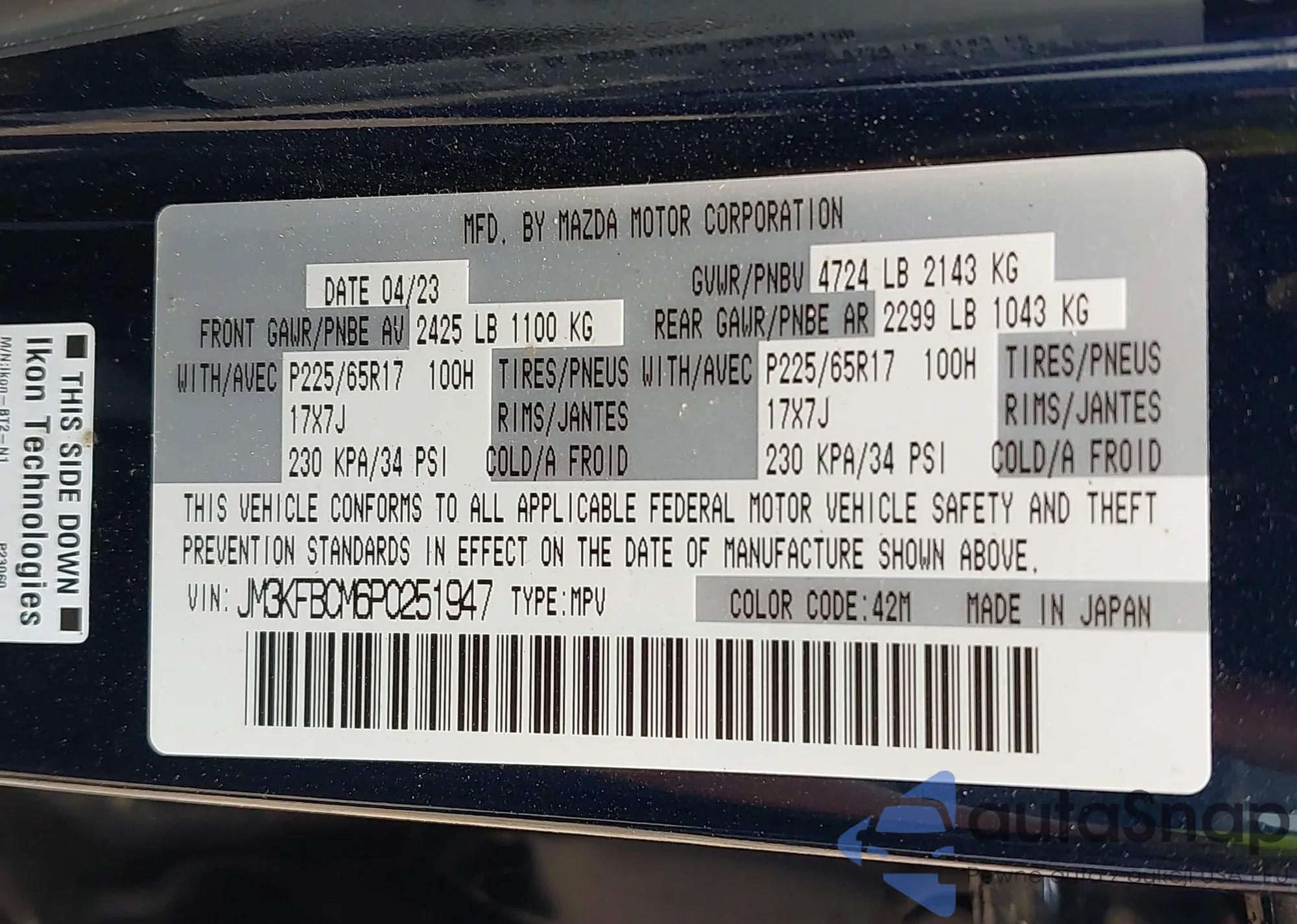 • VIN JM3KFBCM6P0251947