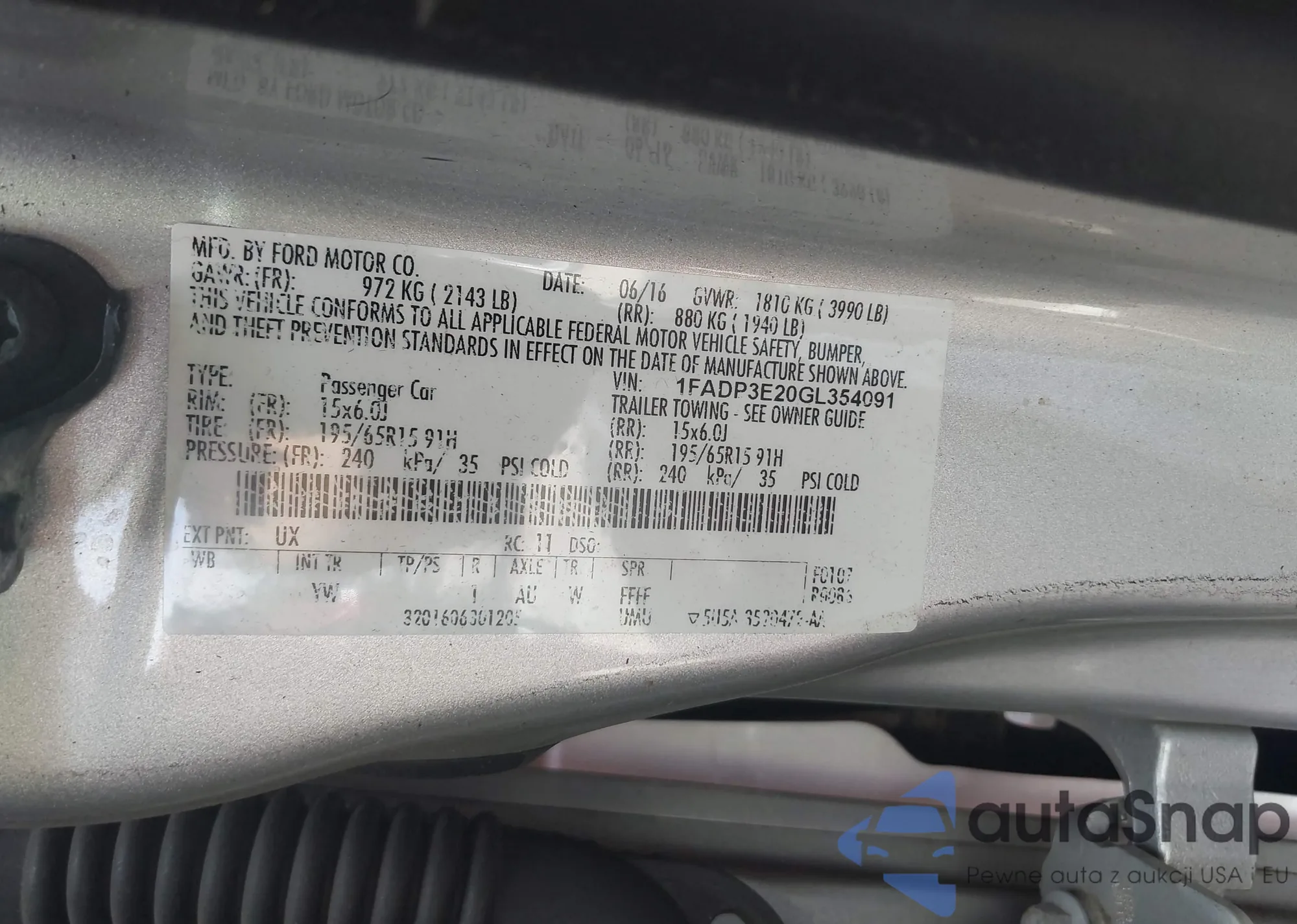 • VIN 1FADP3E20GL354091