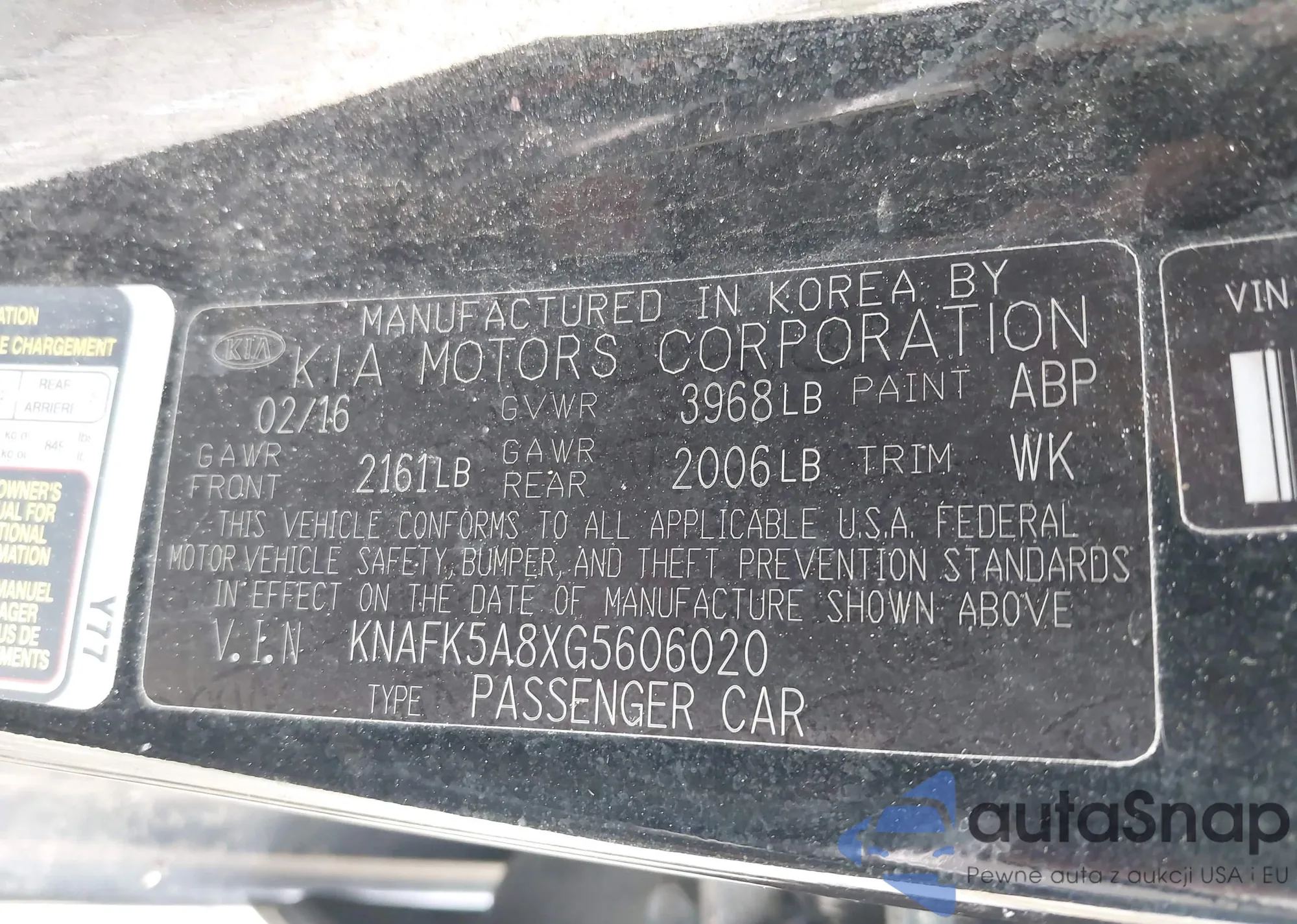 • VIN KNAFK5A8XG5606020