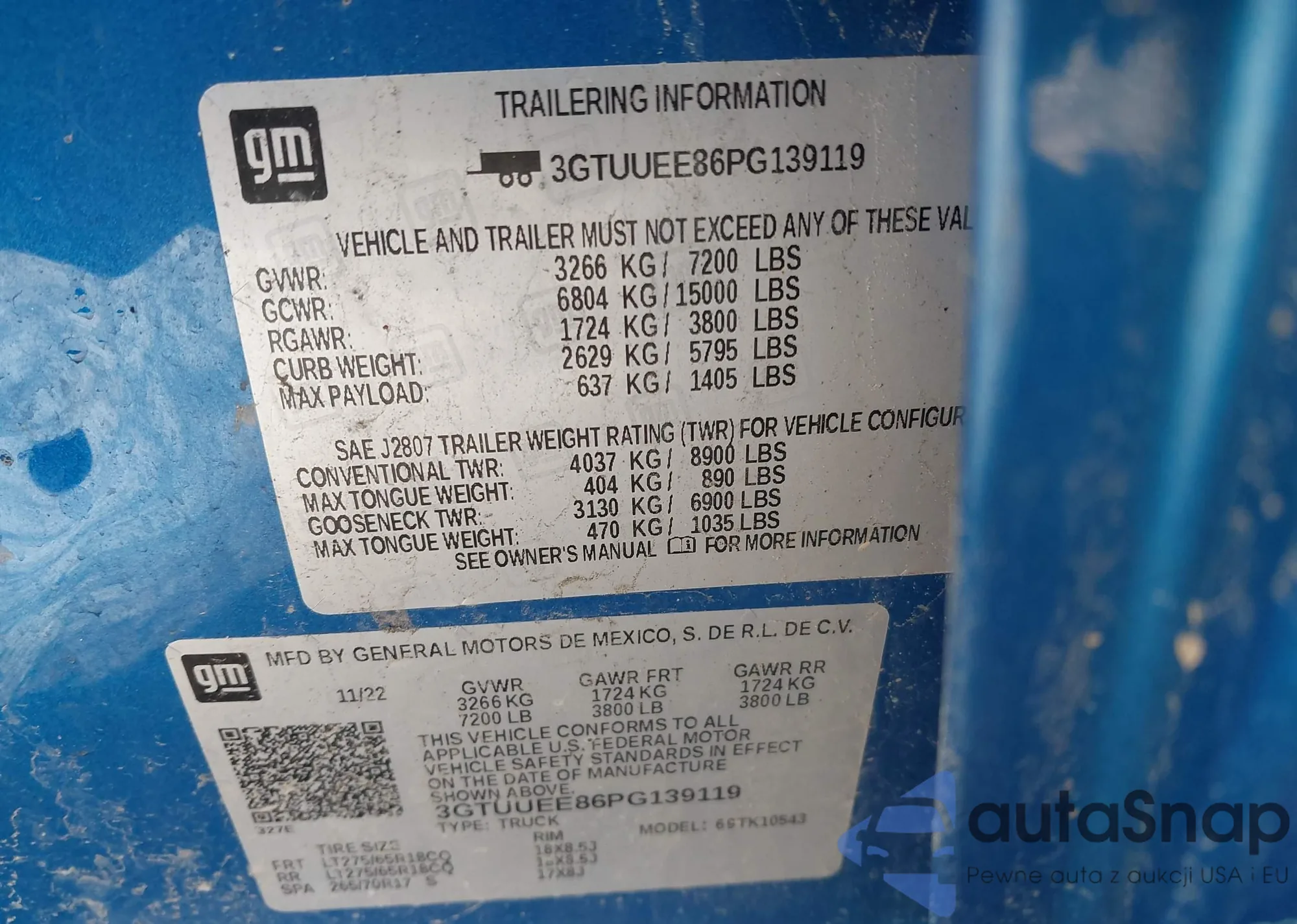 • VIN 3GTUUEE86PG139119
