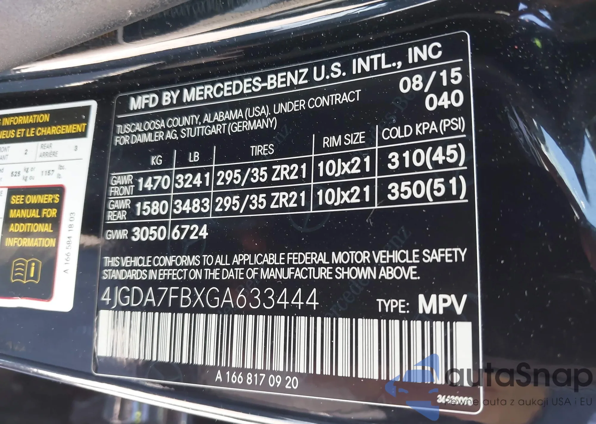 2016 Mercedes-Benz Amg Gle 63 S 4Matic from USA, damaged, VIN 4JGDA7FBXGA633444