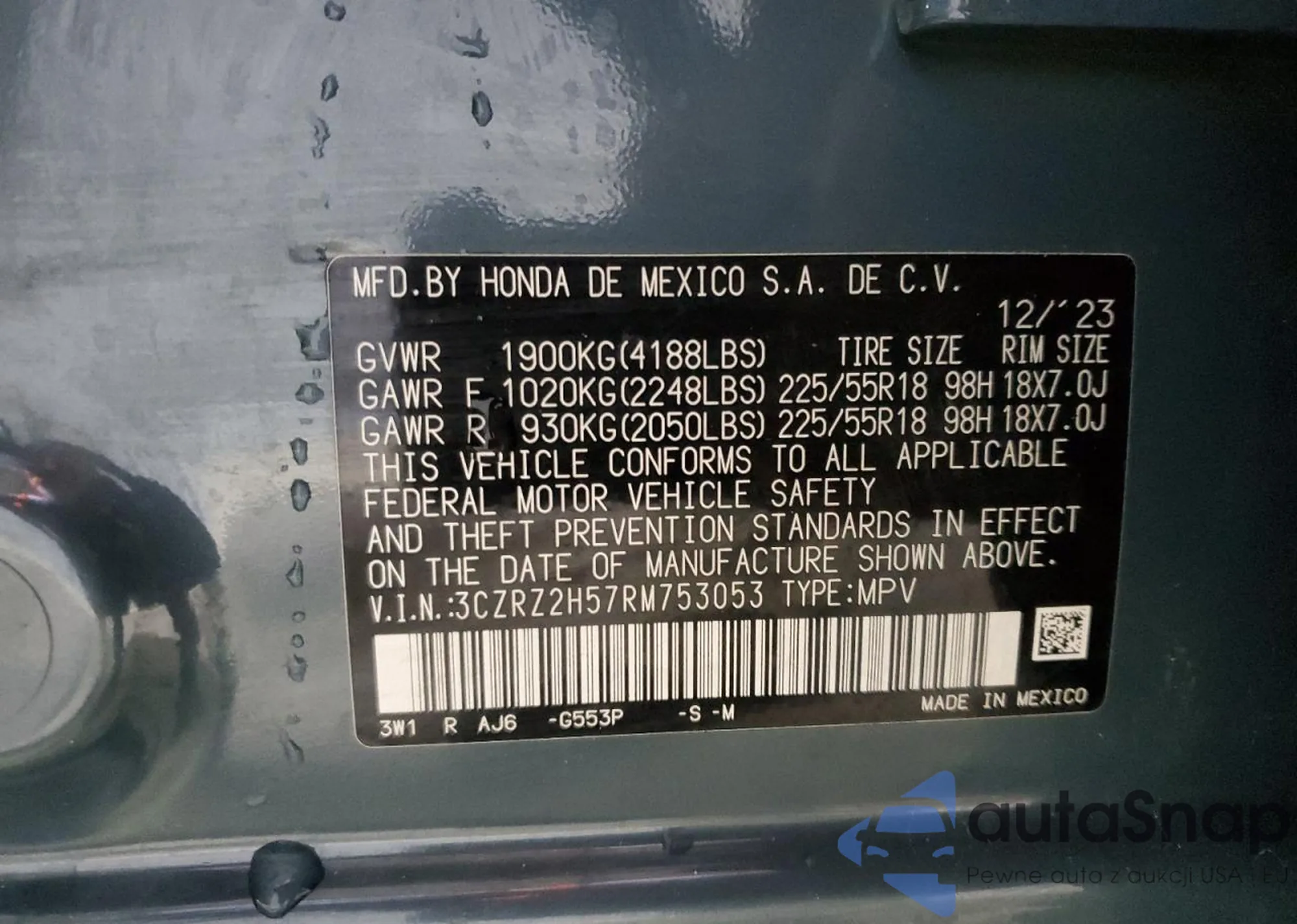 • VIN 3CZRZ2H57RM753053