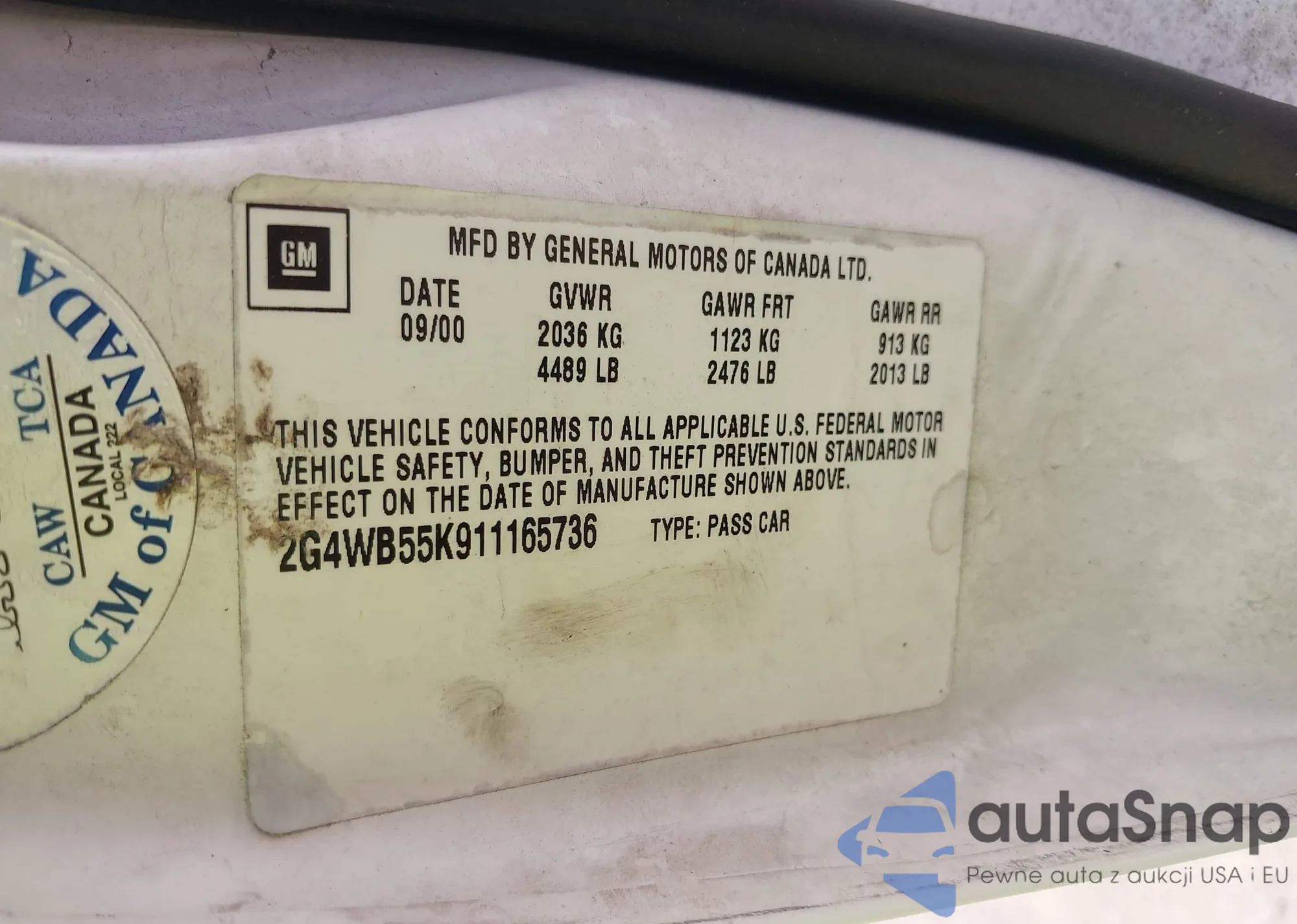 • VIN 2G4WB55K911165736