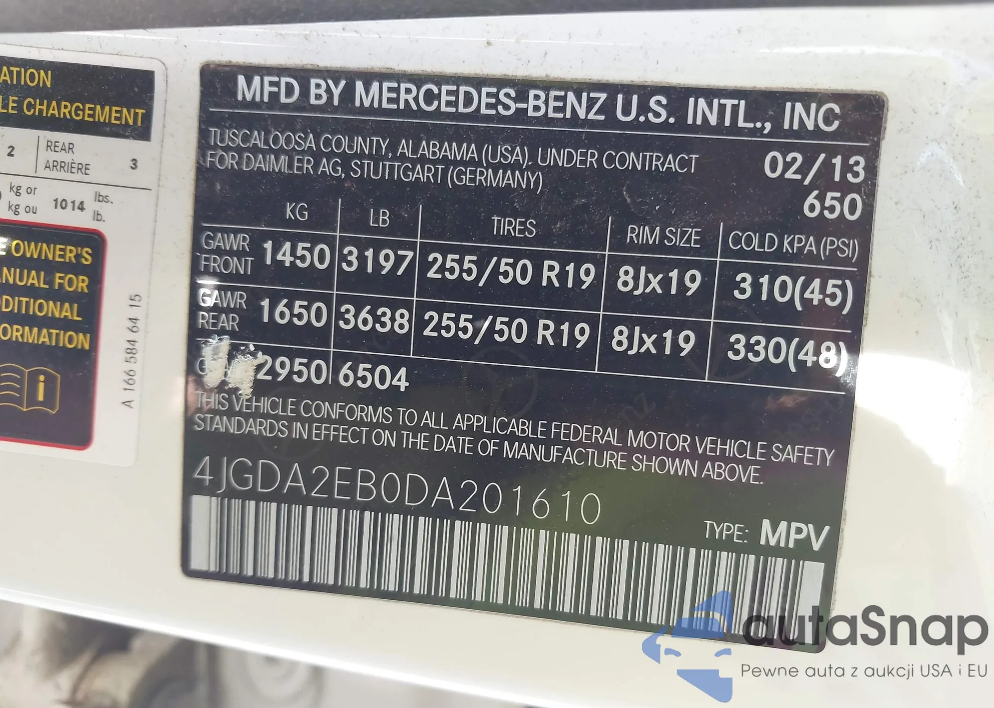 • VIN 4JGDA2EB0DA201610
