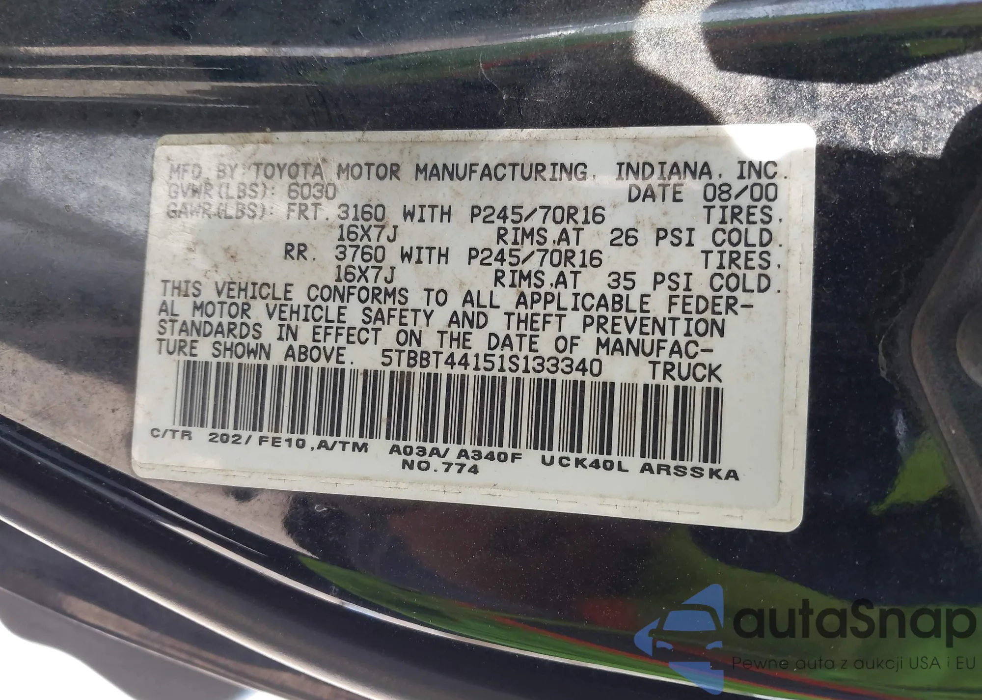 • VIN 5TBBT44151S133340