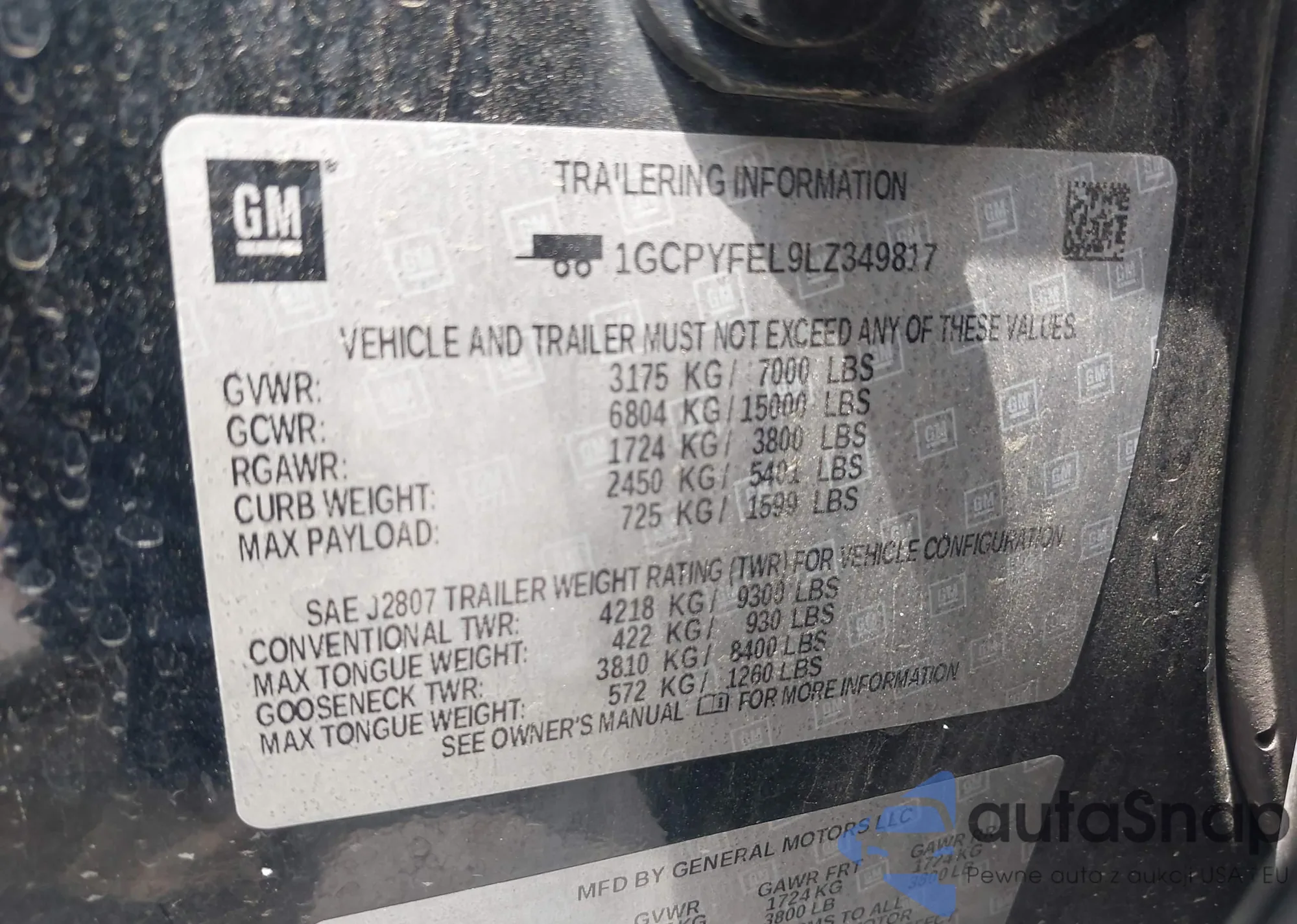 • VIN 1GCPYFEL9LZ349817