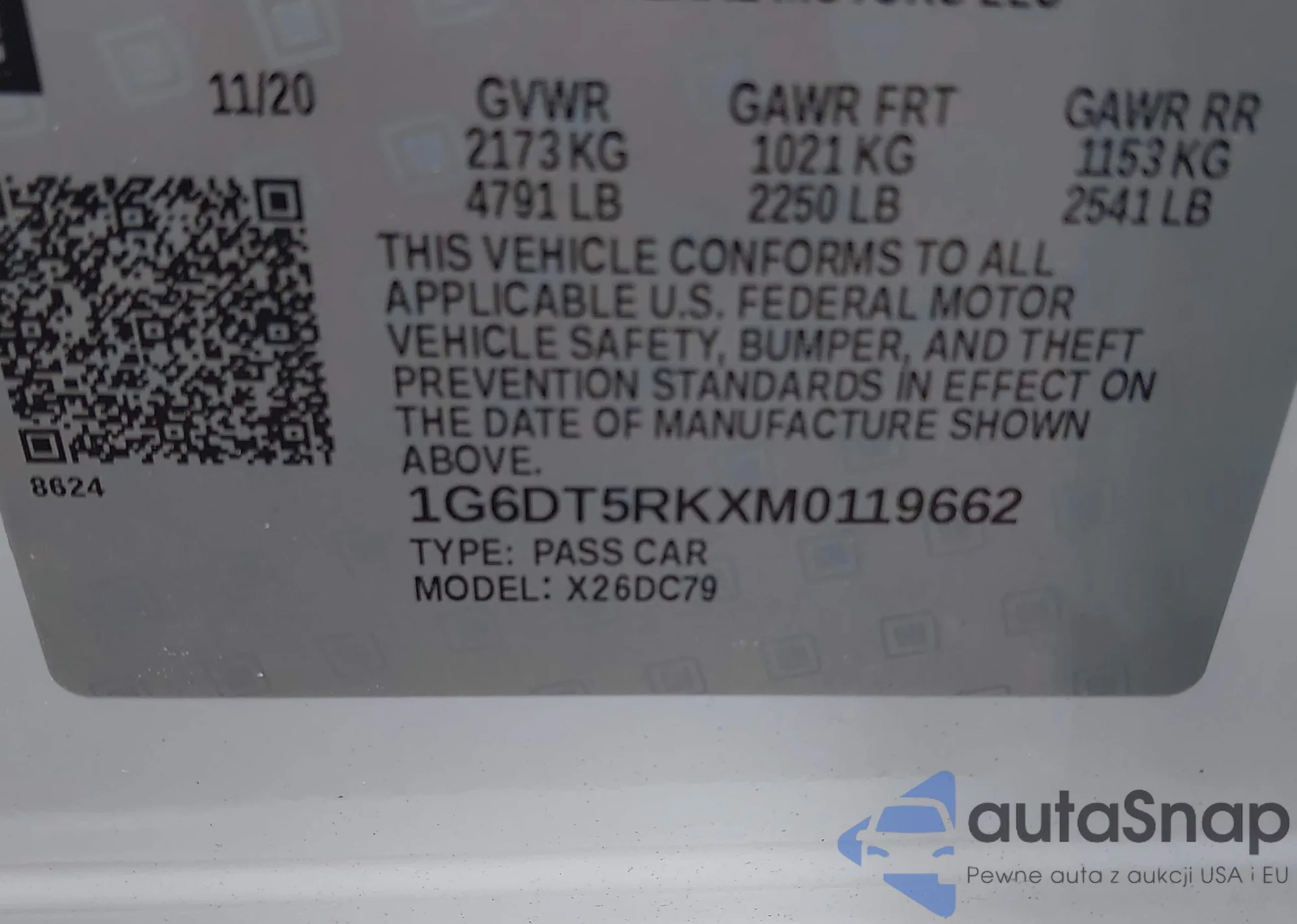 • VIN 1G6DT5RKXM0119662
