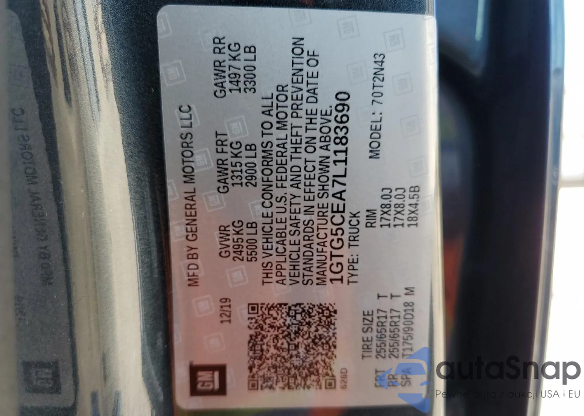 • VIN 1GTG5CEA7L1183690