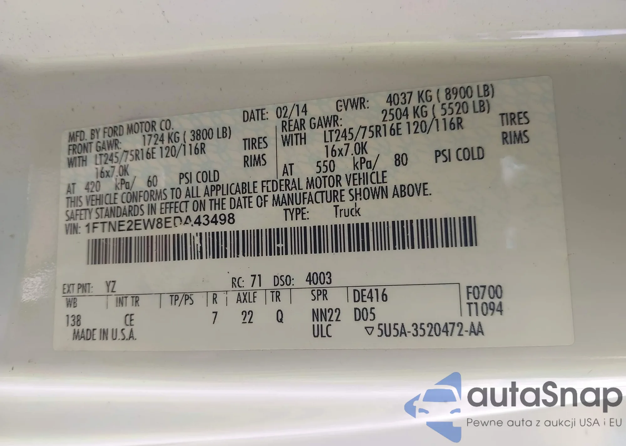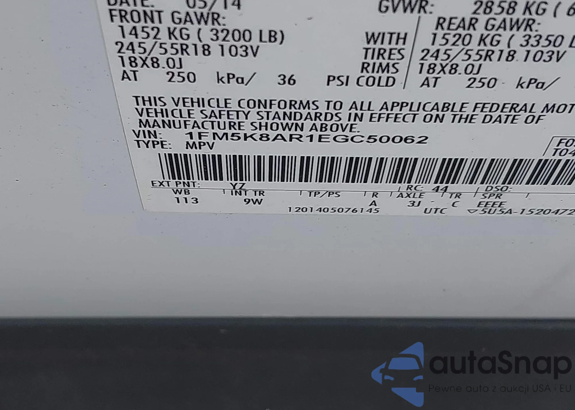 • VIN 1FM5K8AR1EGC50062