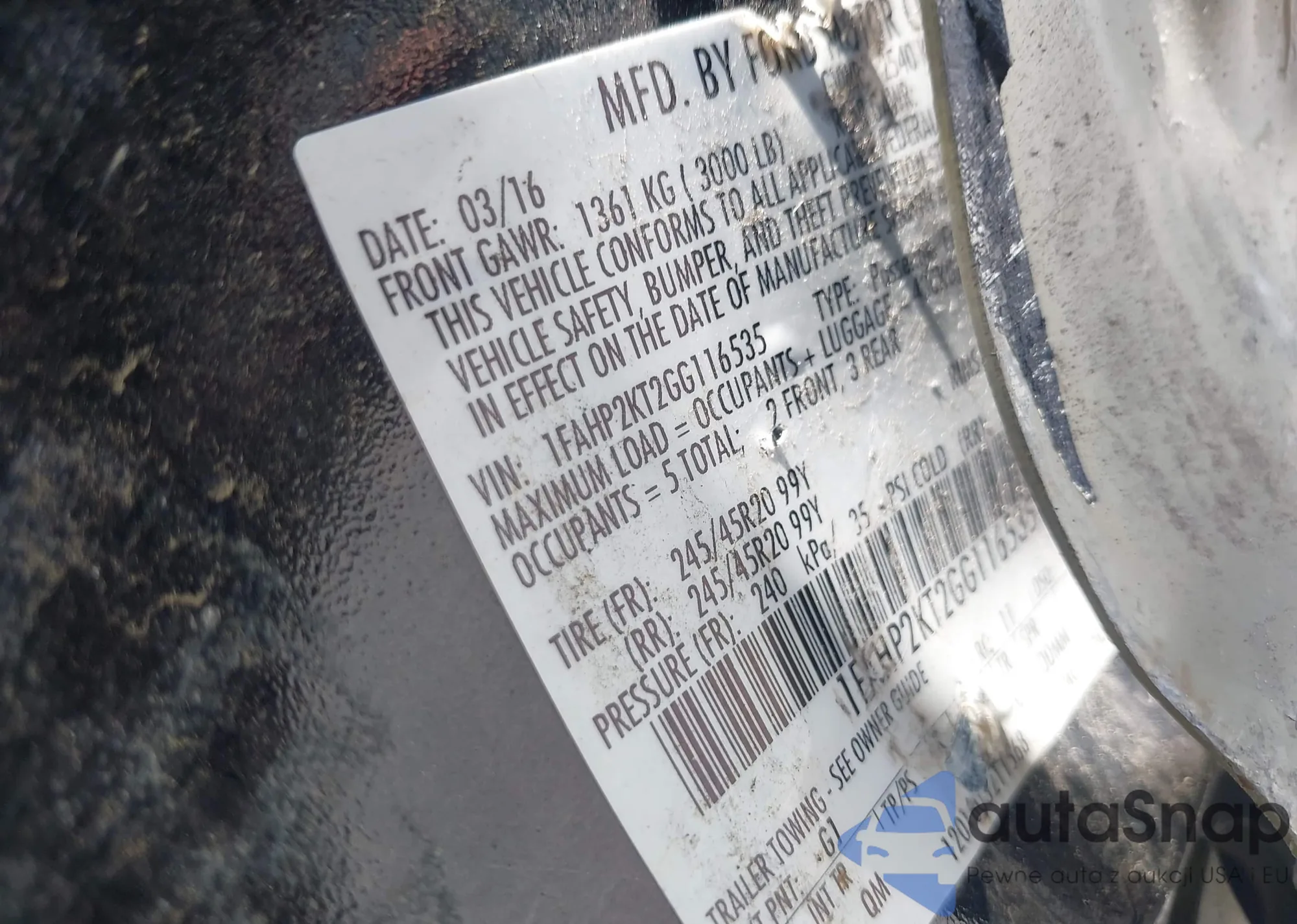 LOT: 42359393 VIN: 1FAHP2KT2GG116535