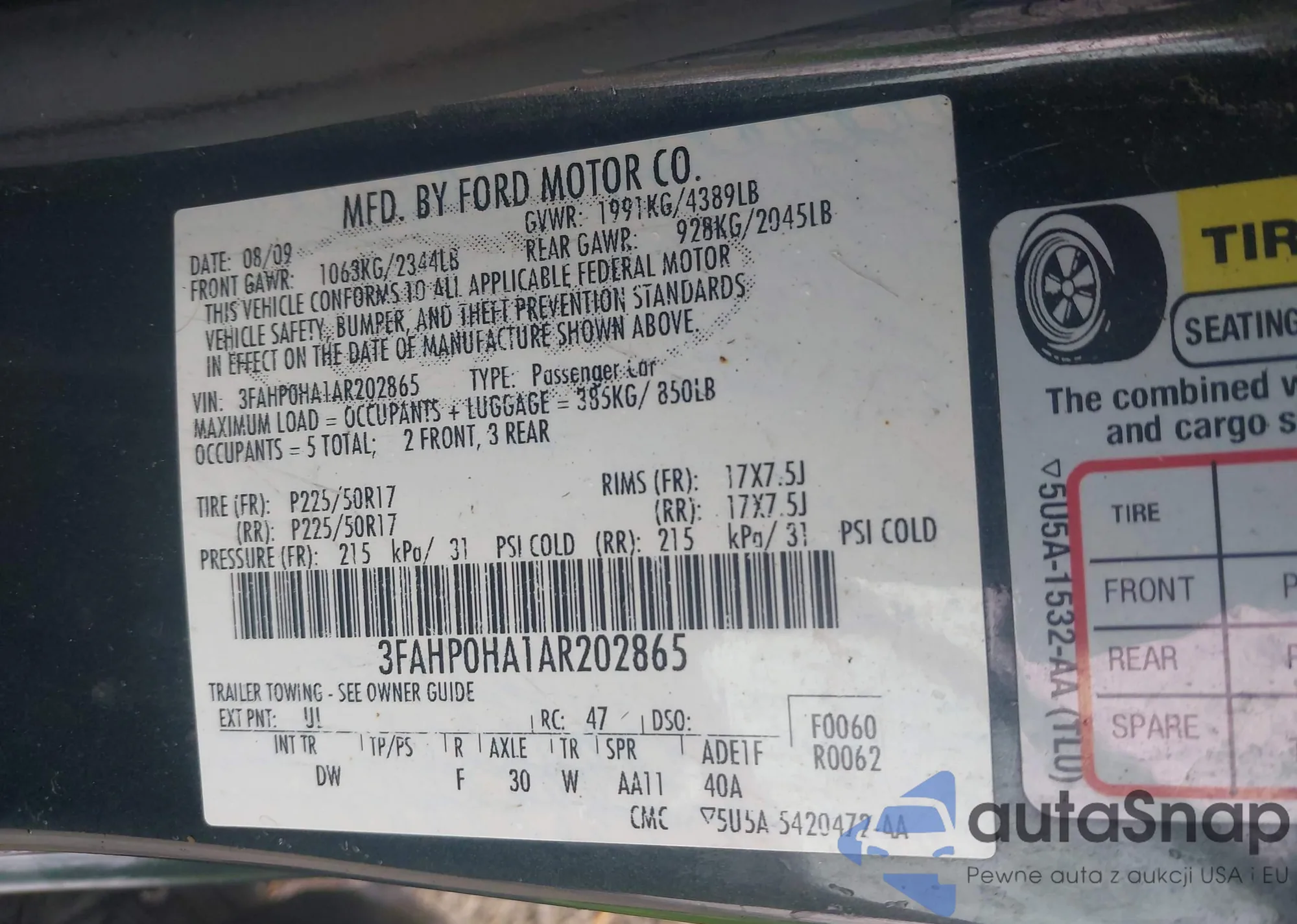 LOT: 42295349 VIN: 3FAHP0HA1AR202865