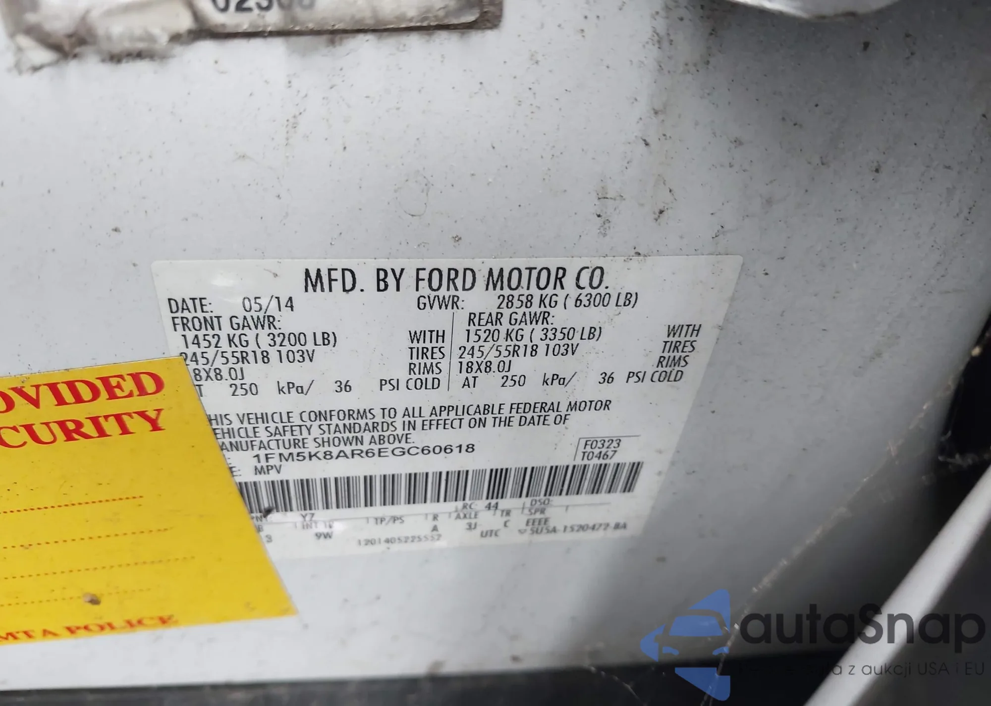 LOT: 42375939 VIN: 1FM5K8AR6EGC60618
