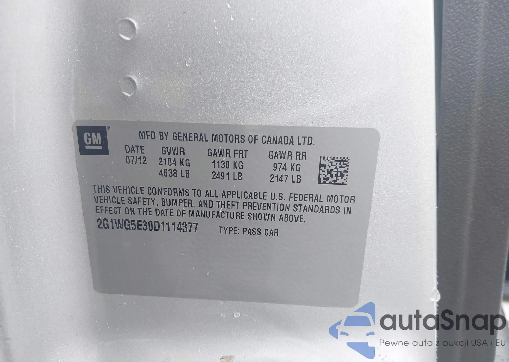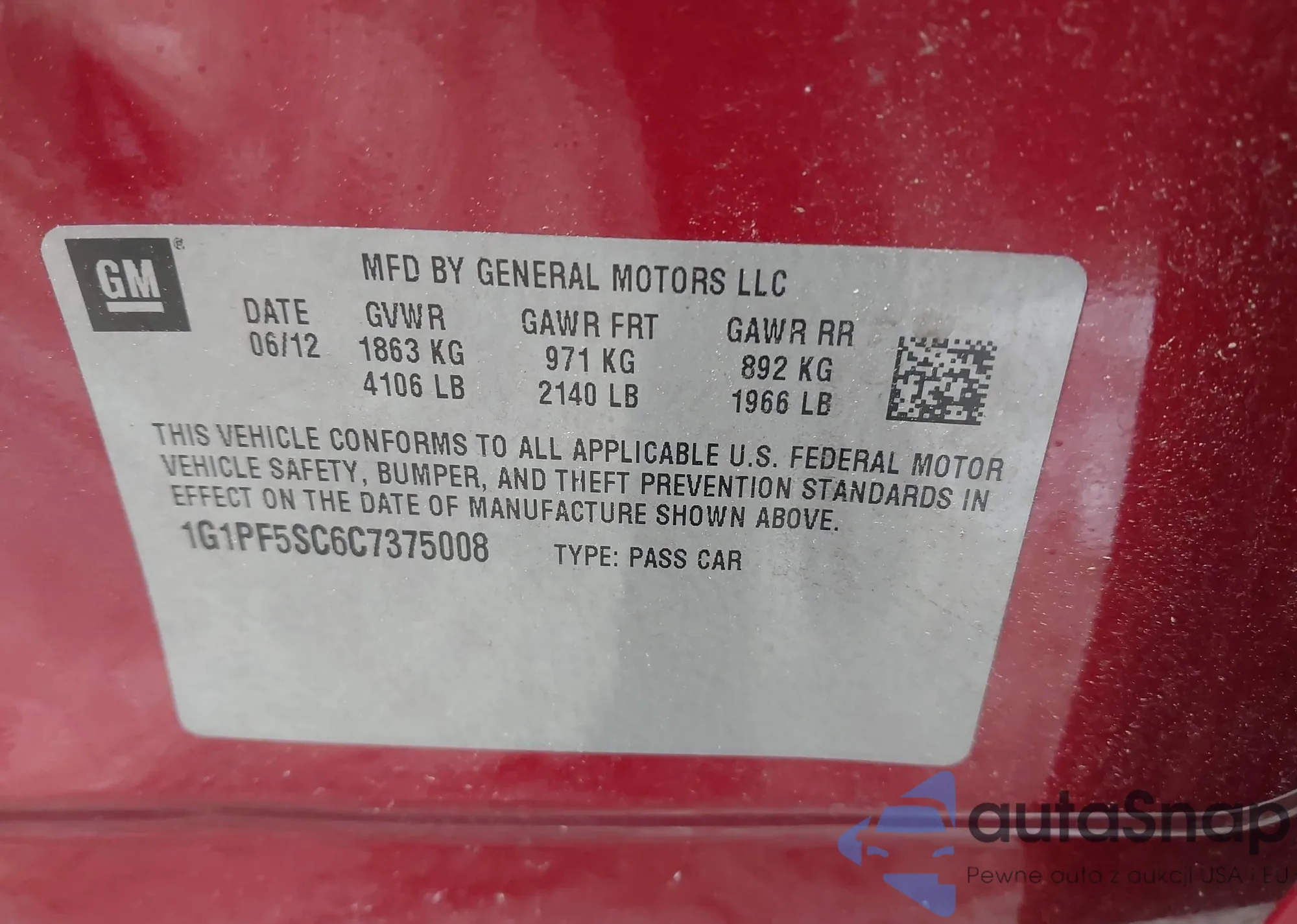 LOT: 42235657 VIN: 1G1PF5SC6C7375008
