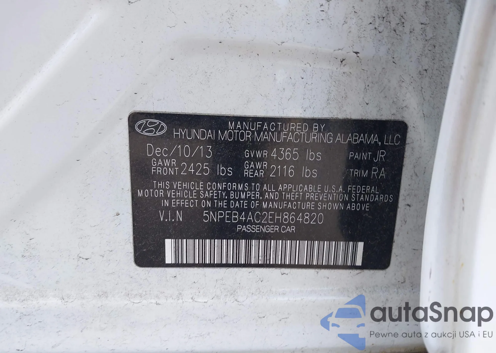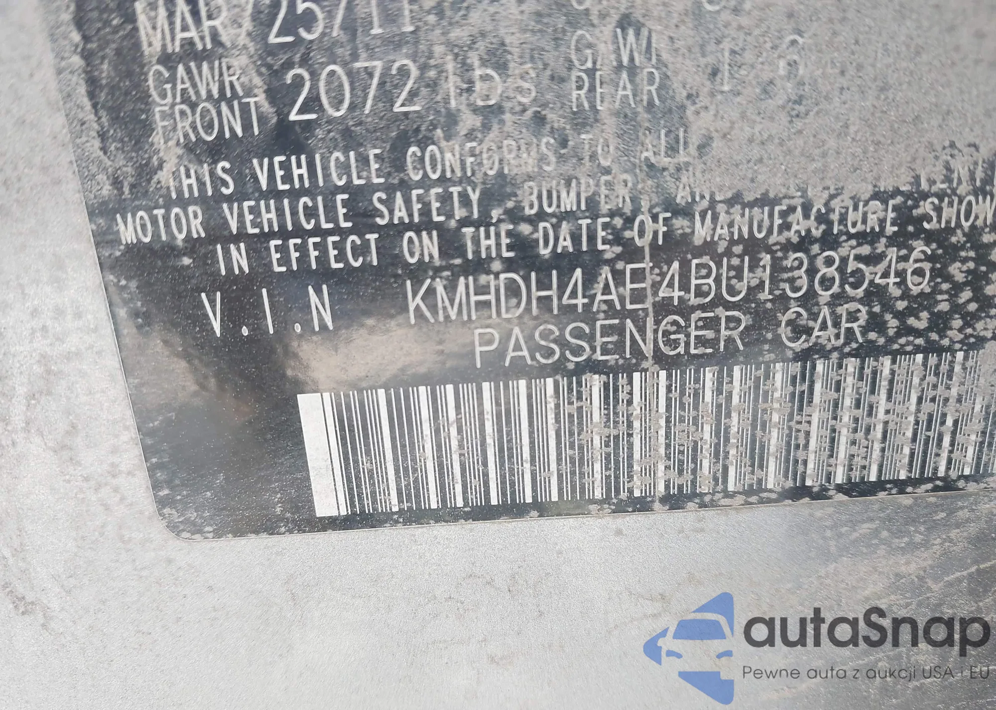 LOT: 42253219 VIN: KMHDH4AE4BU138546