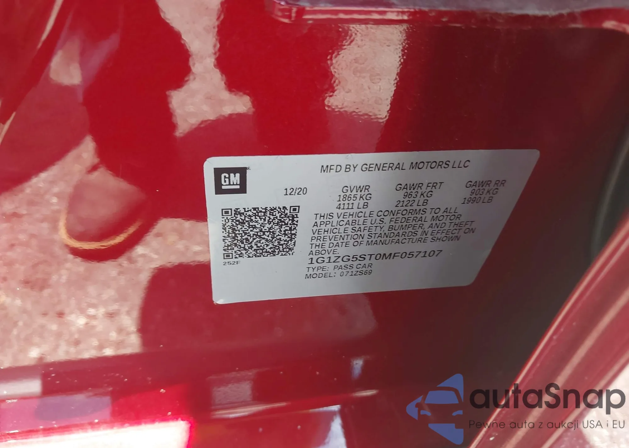 • VIN 1G1ZG5ST0MF057107