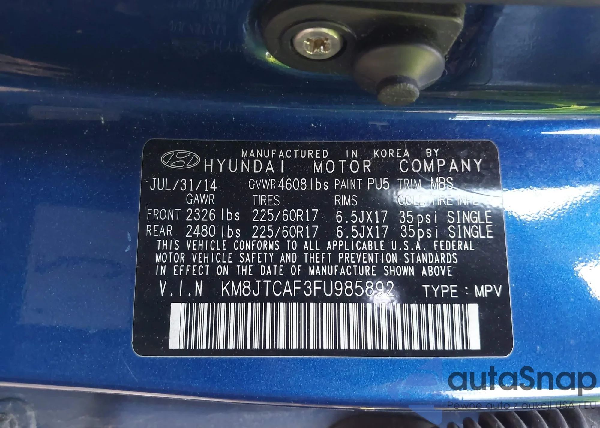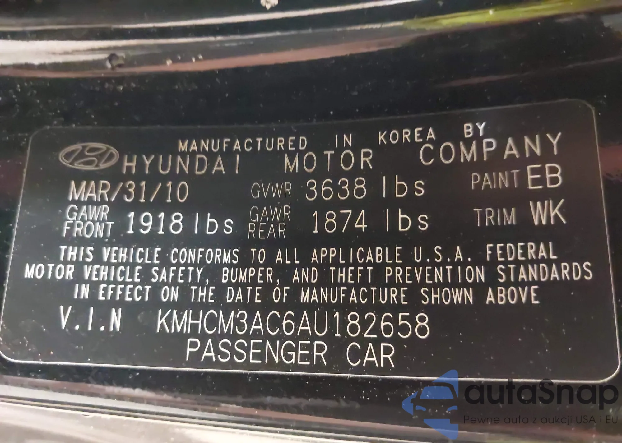 • VIN KMHCM3AC6AU182658