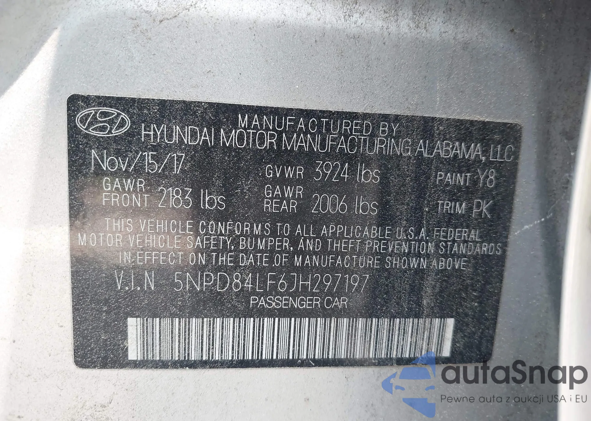 • VIN 5NPD84LF6JH297197