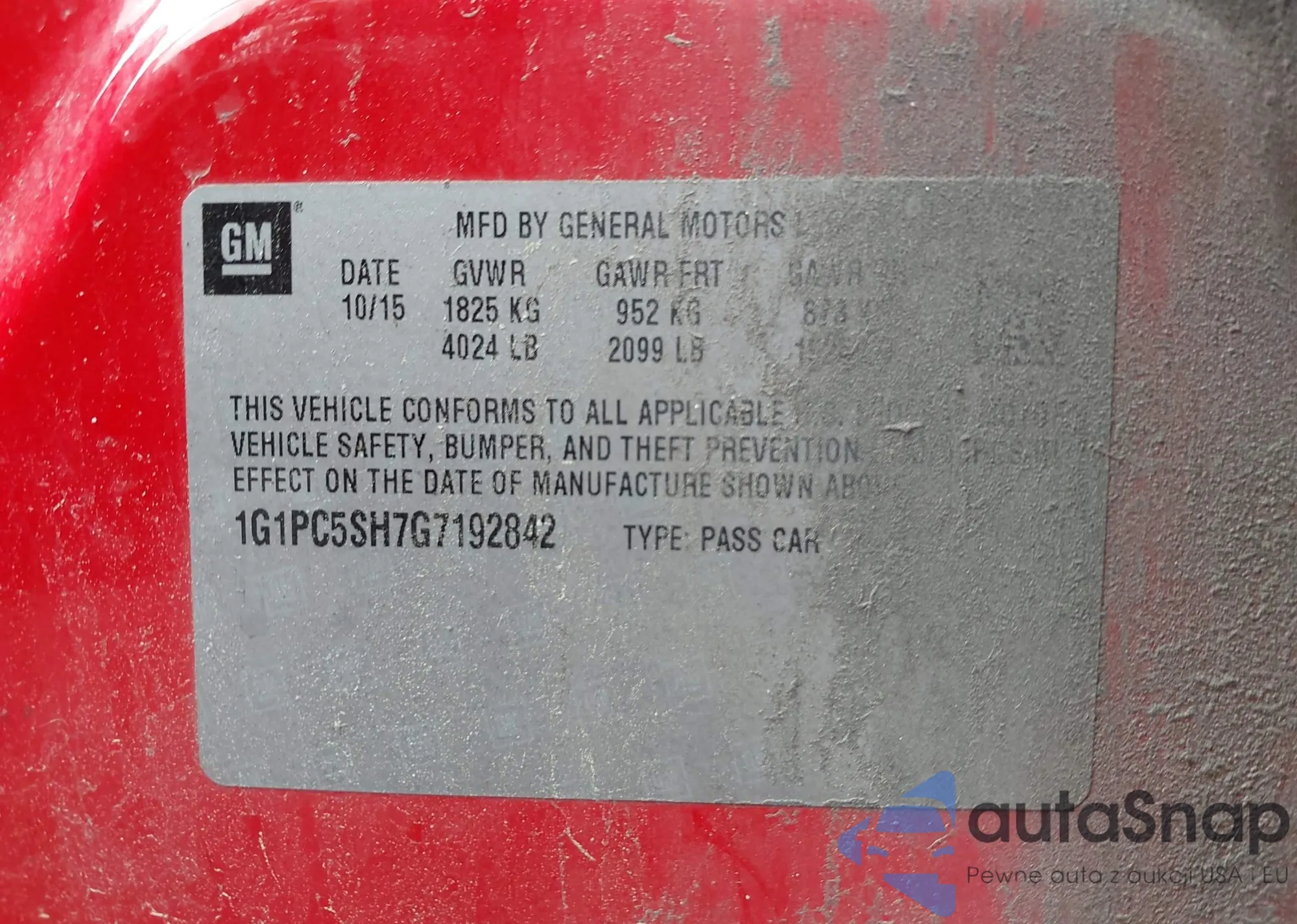 LOT: 42281887 VIN: 1G1PH5SC2C7359382