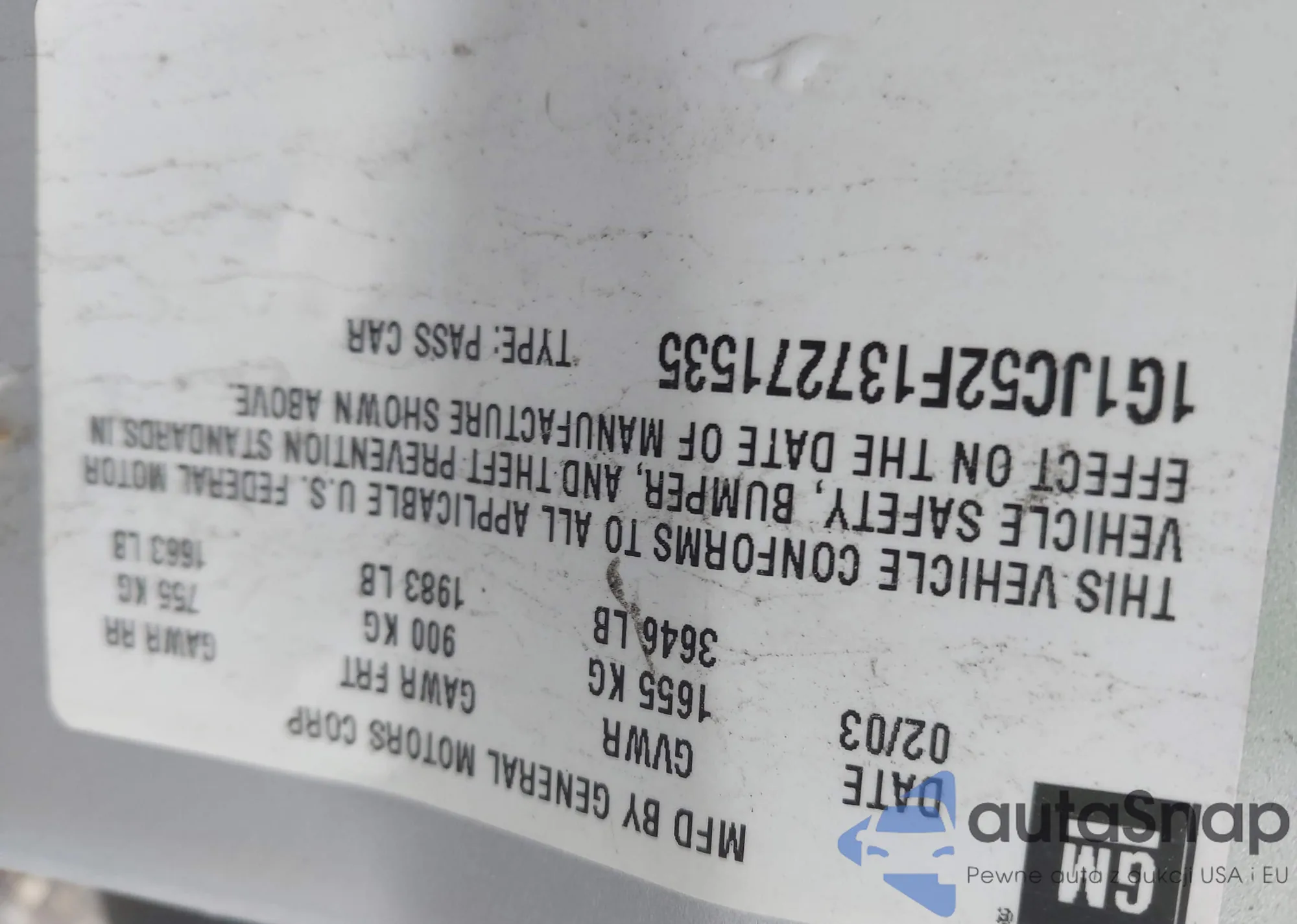 LOT: 42366178 VIN: 2G1WP521949110560