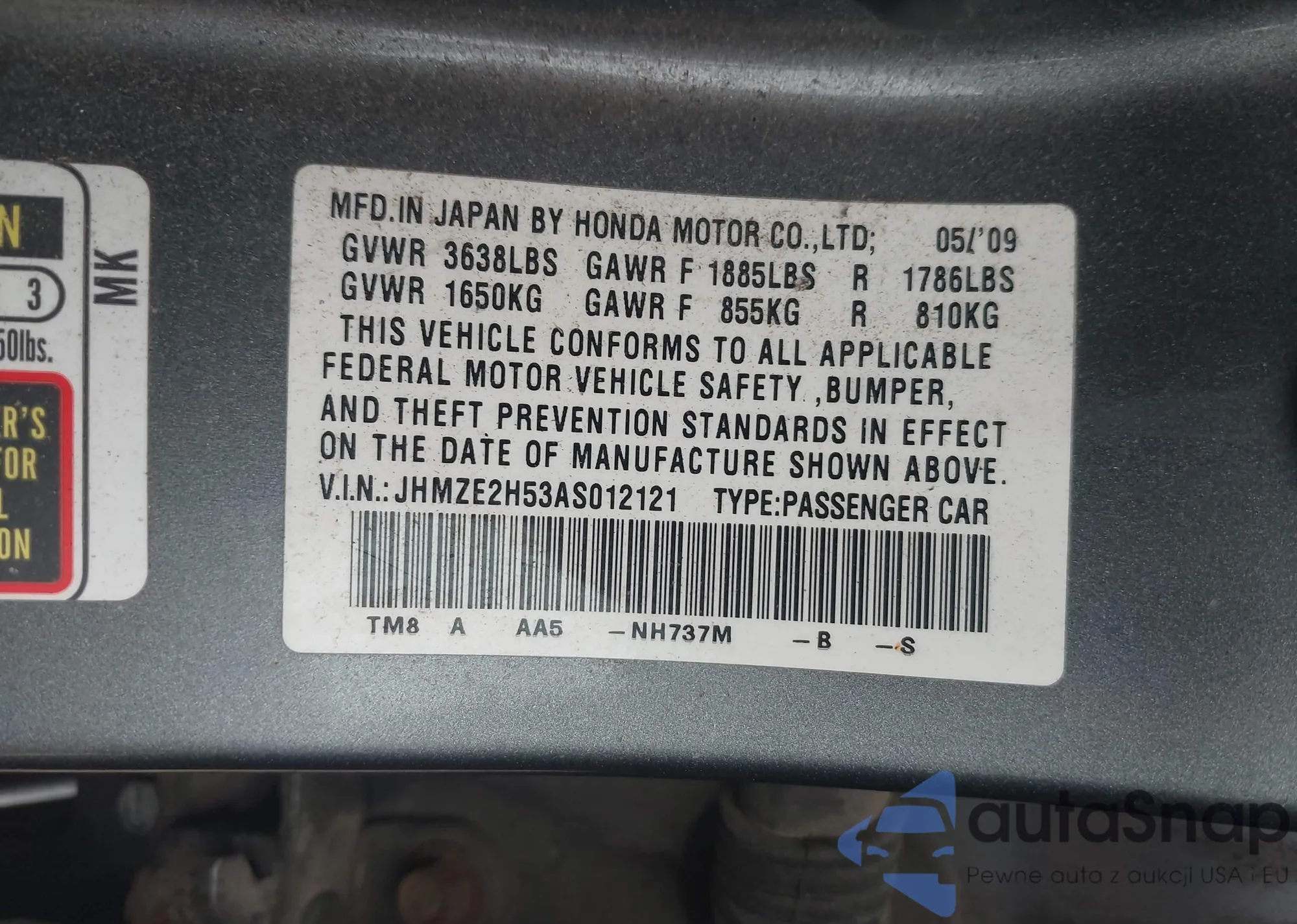 LOT: 42328107 VIN: WBAET37494NJ83749