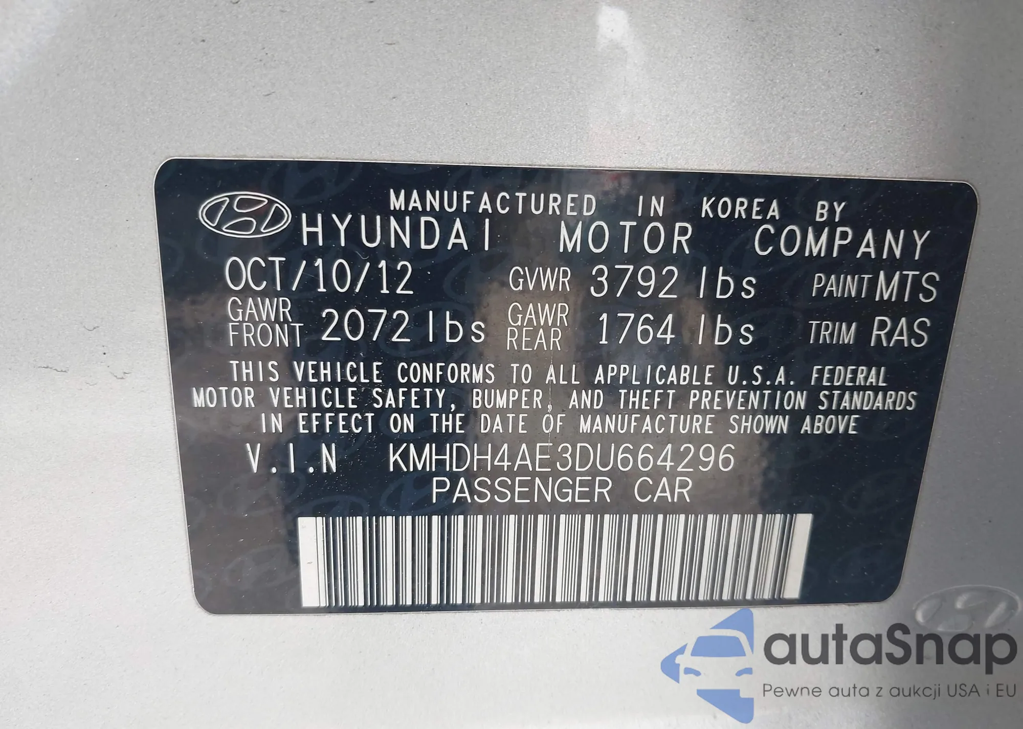 • VIN 1HGCR2E50FA070461