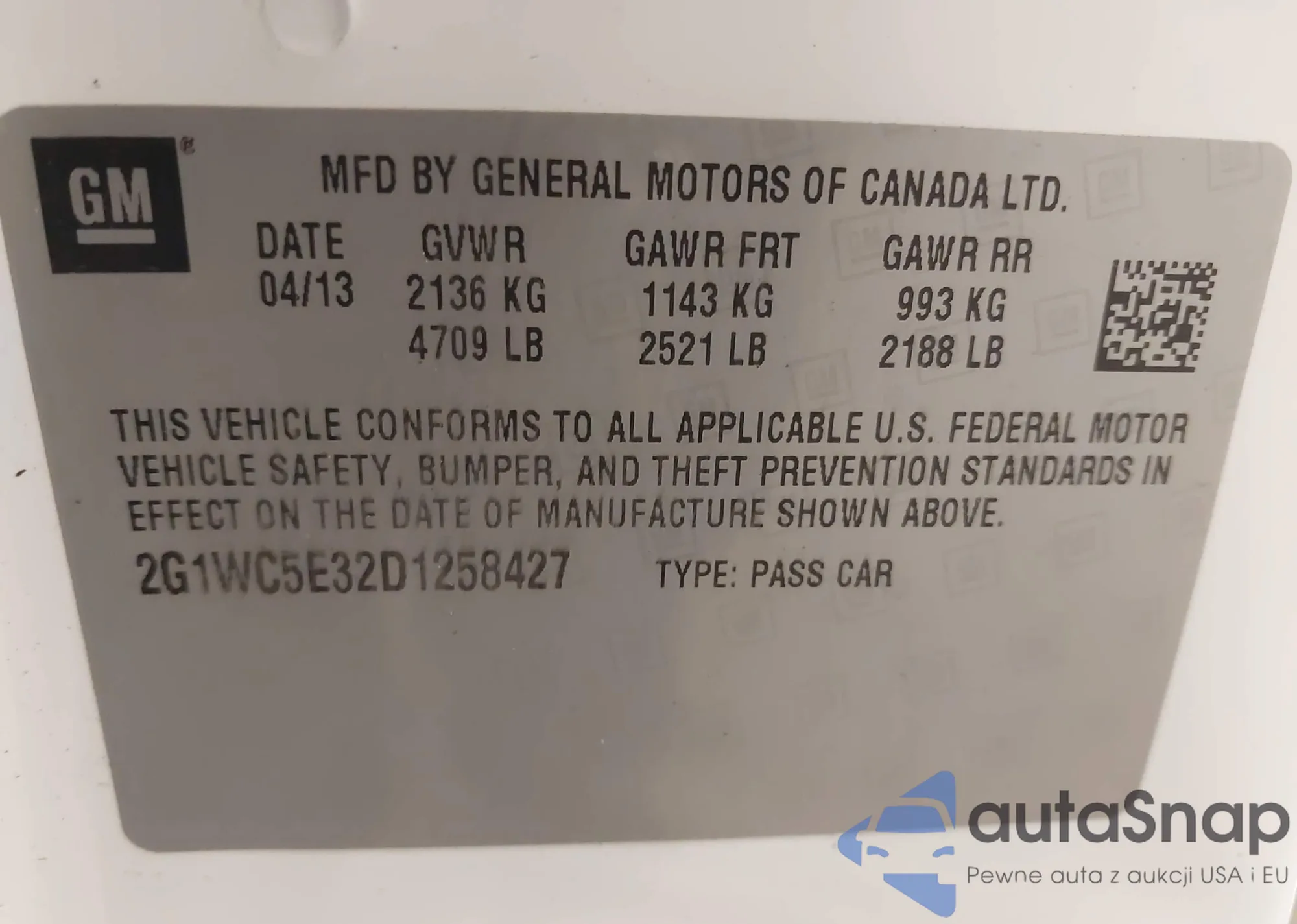 LOT: 42312690 VIN: 5J6RE48518L013649
