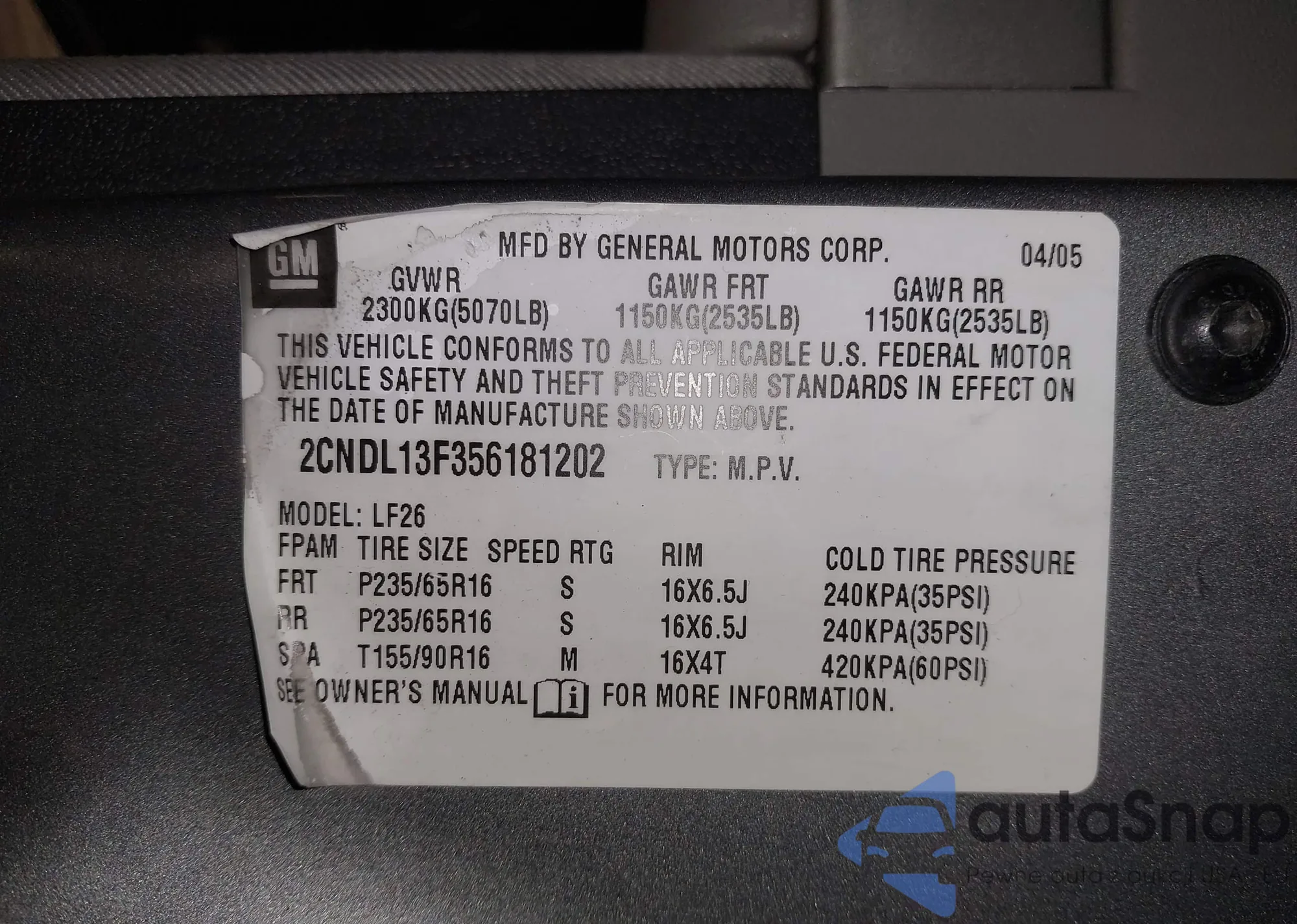 • VIN 2CNDL13F356181202