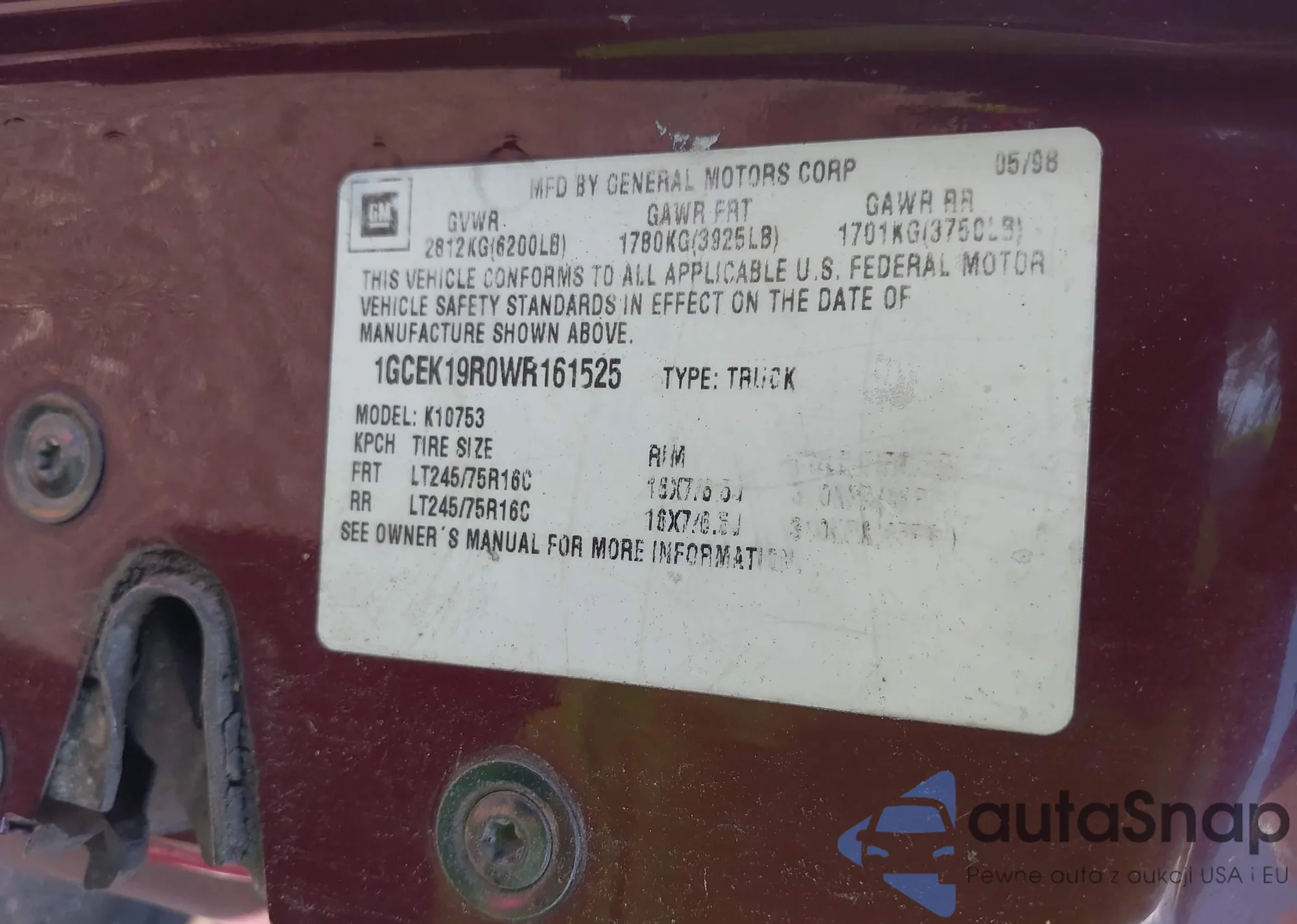 • VIN 1GKS2MEF5CR309748