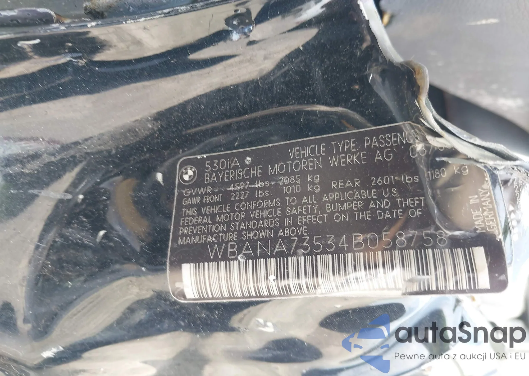 LOT: 42288573 VIN: WBANA73534B058758