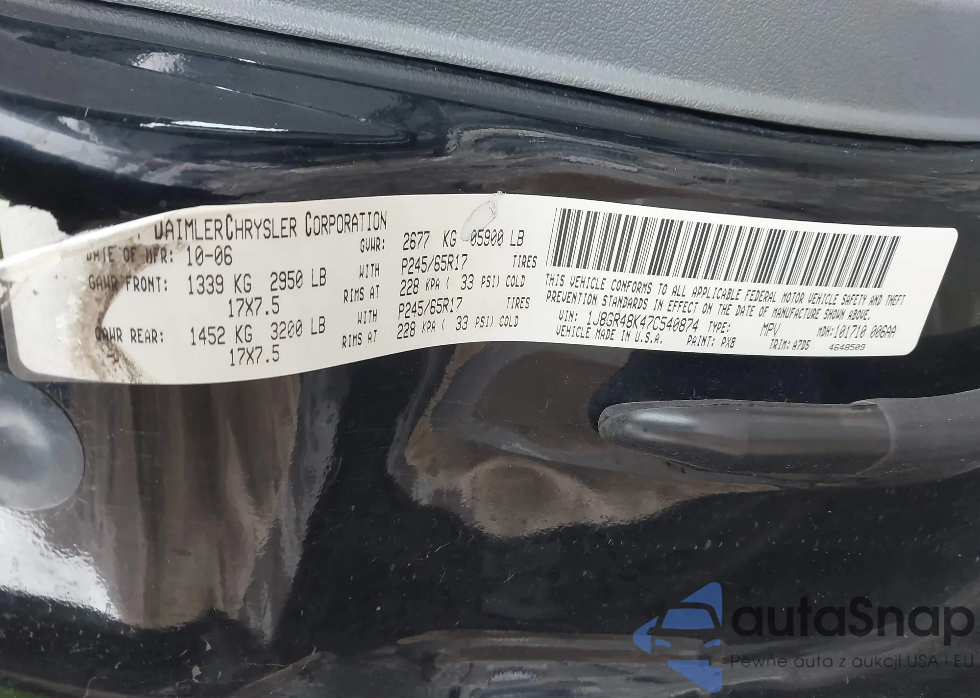 • VIN 1J8GR48K47C540874