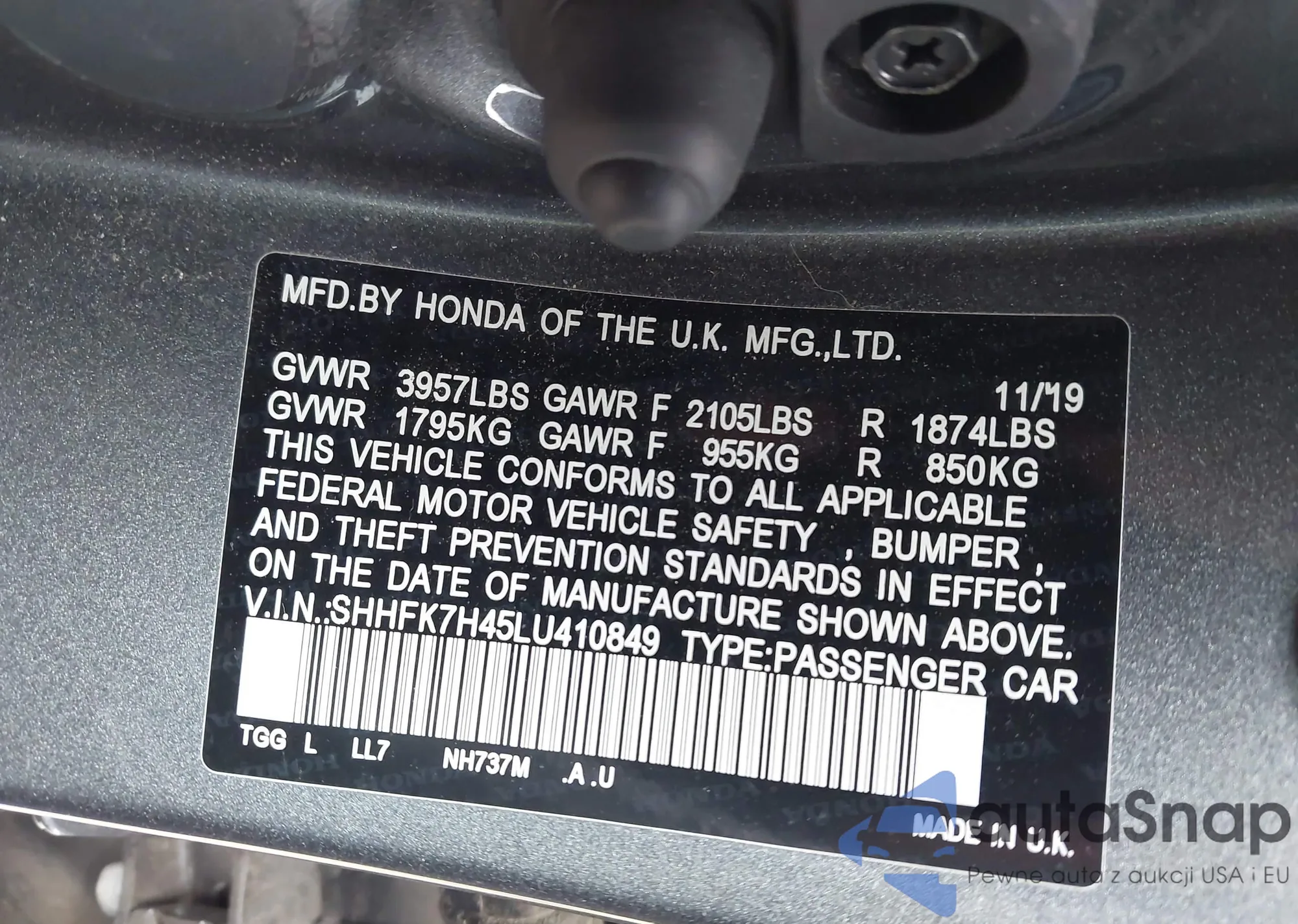 2020 Honda Civic Sport from USA, damaged, VIN SHHFK7H45LU410849