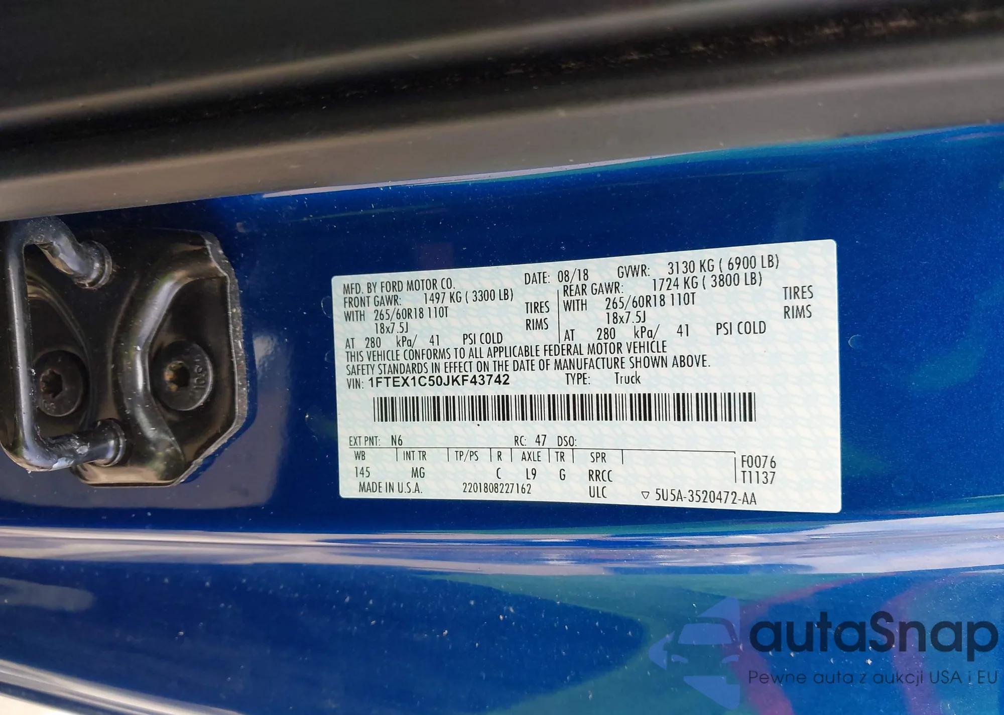 LOT: 42036557 VIN: 1FTEX1C50JKF43742
