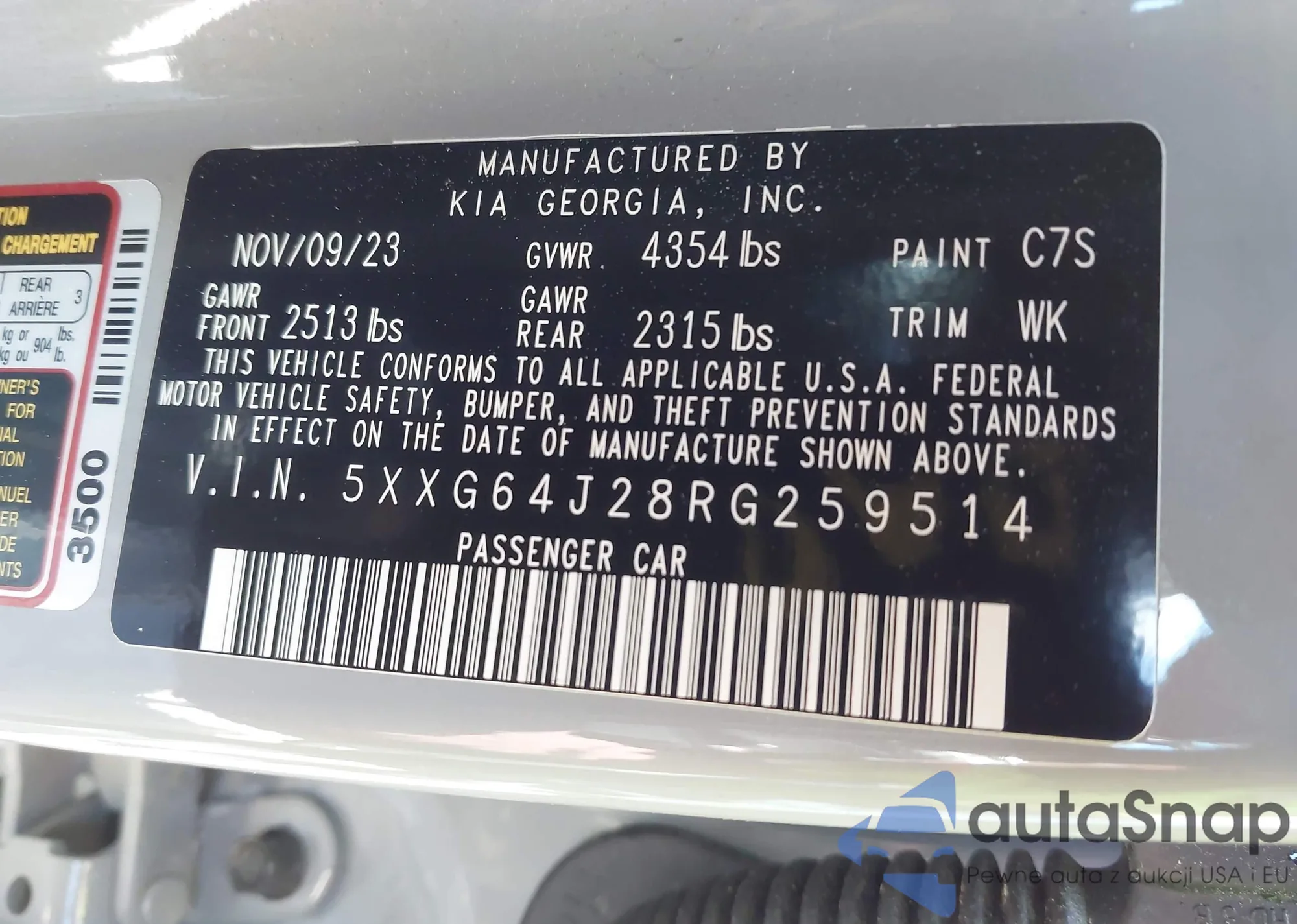 LOT: 42045439 VIN: 5XXG64J28RG259514