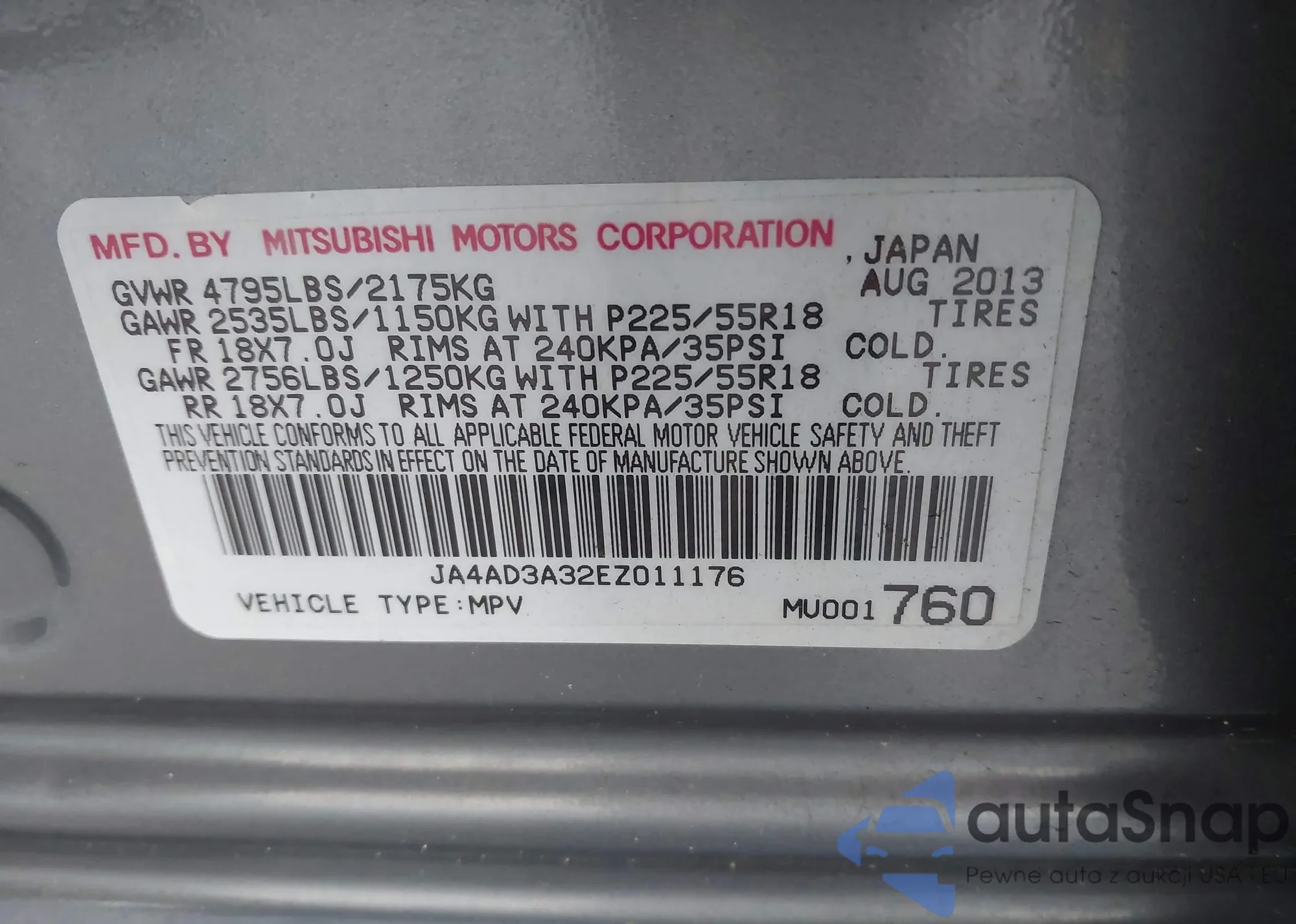 LOT: 42343593 VIN: ML32F3FJ0HHF12577
