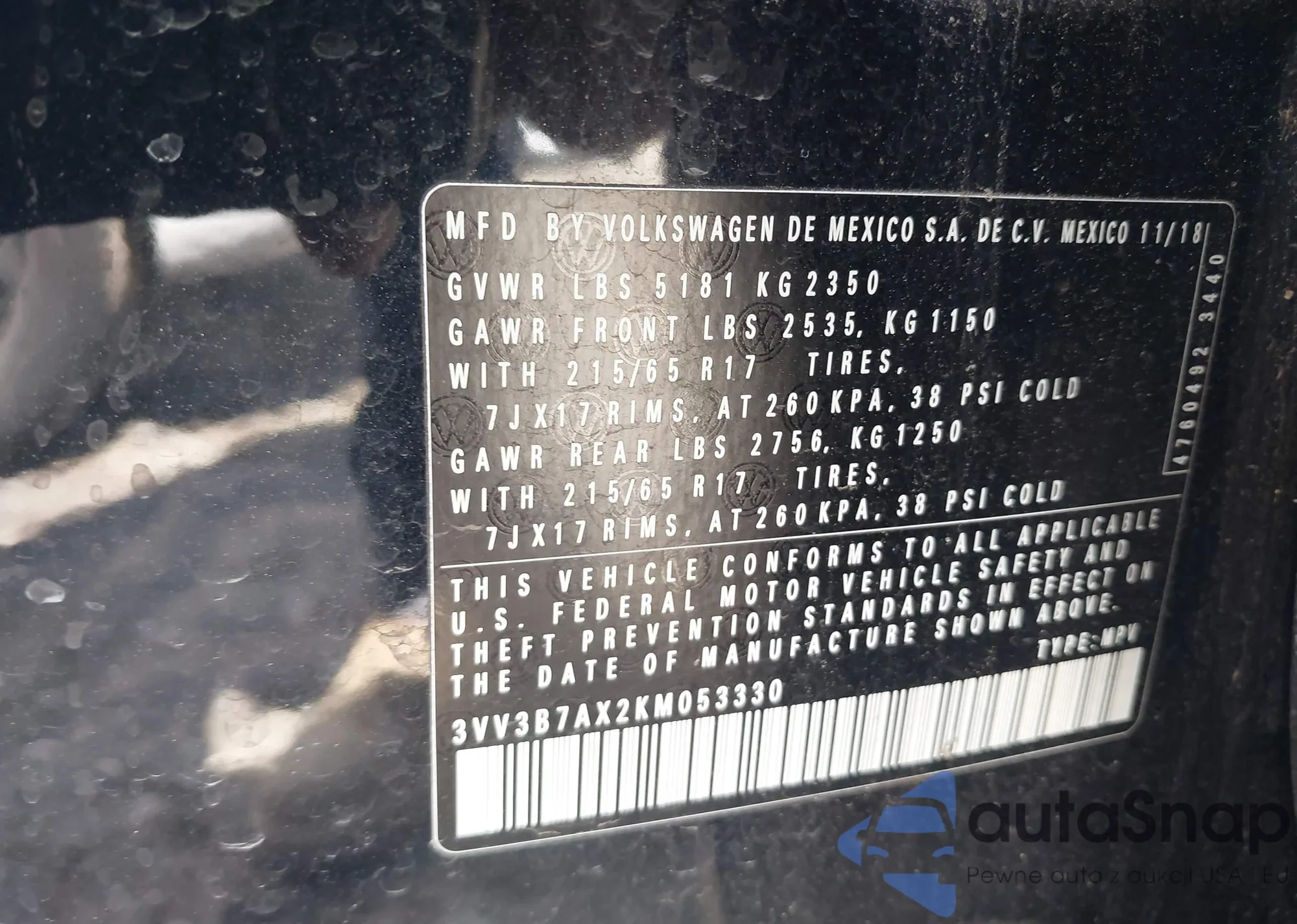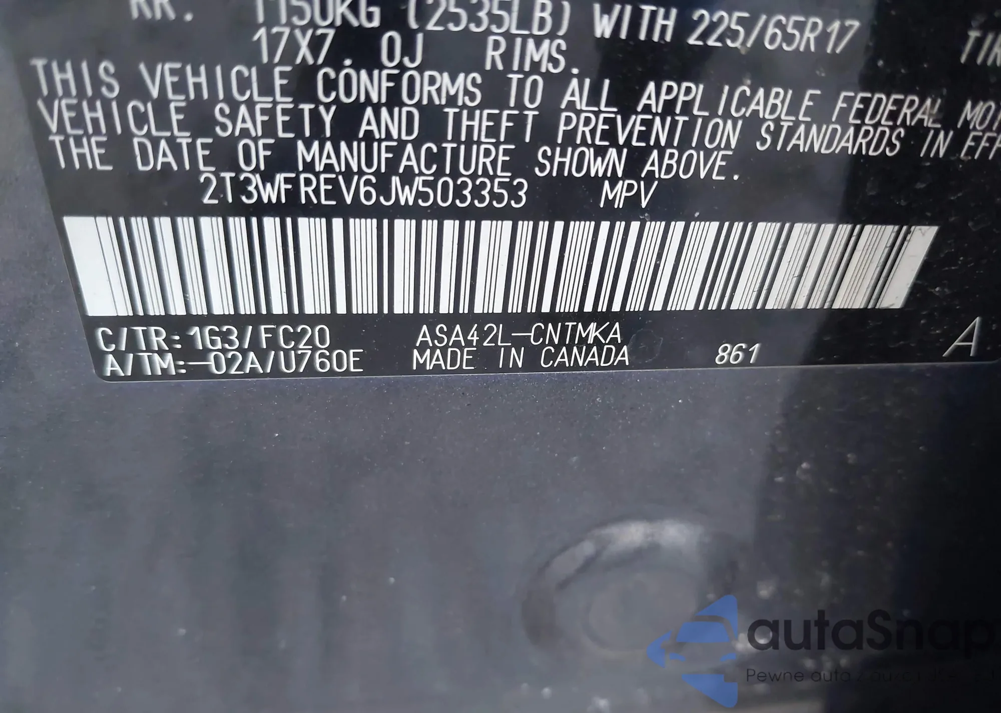 • VIN 2T3WFREV6JW503353