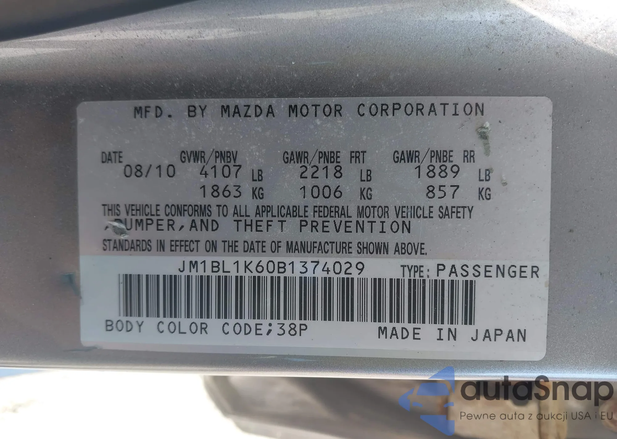 LOT: 42203890 VIN: KNADN4A31D6115175