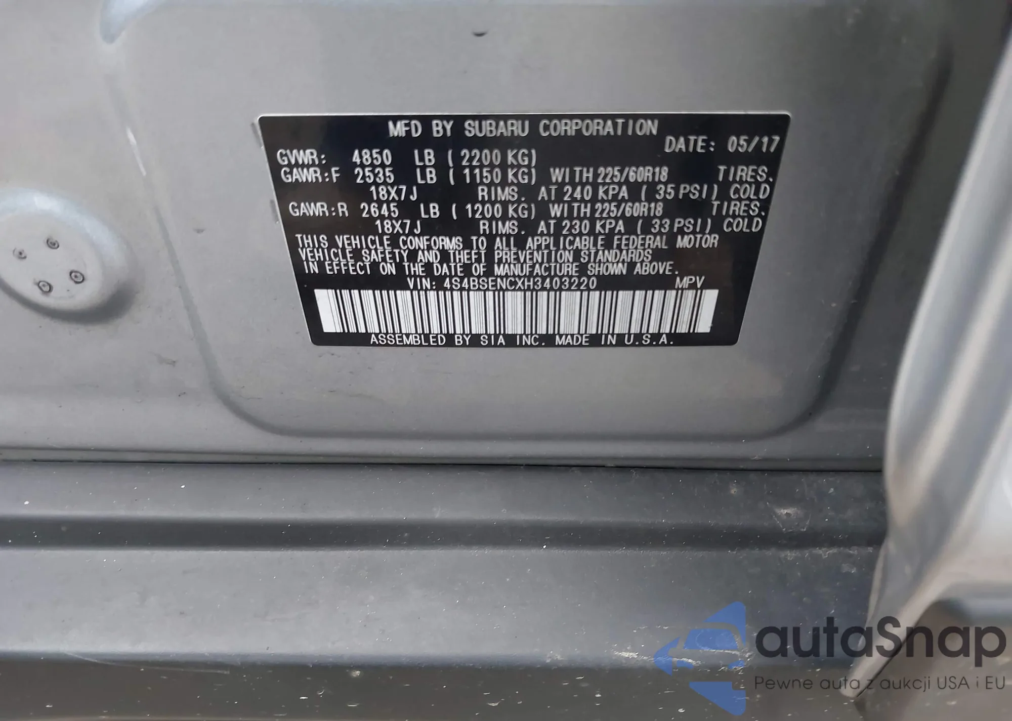 • VIN 4S4BSENCXH3403220
